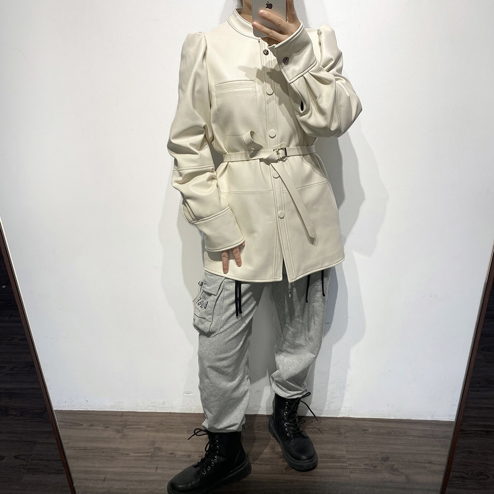 2022 Autumn New Oversized Women Single Breasted Leather Shirt Blouse Real Leather Jacket For Ladies