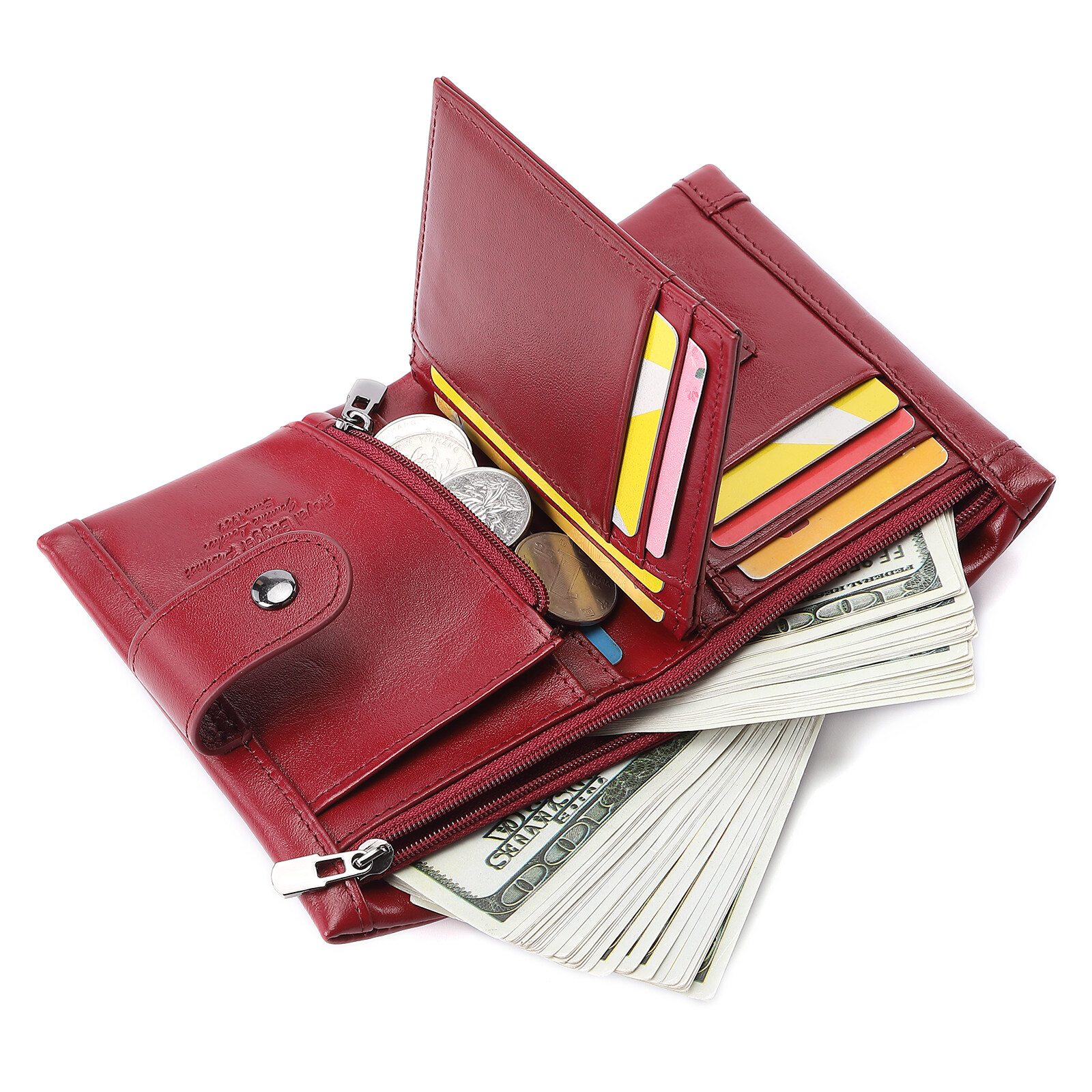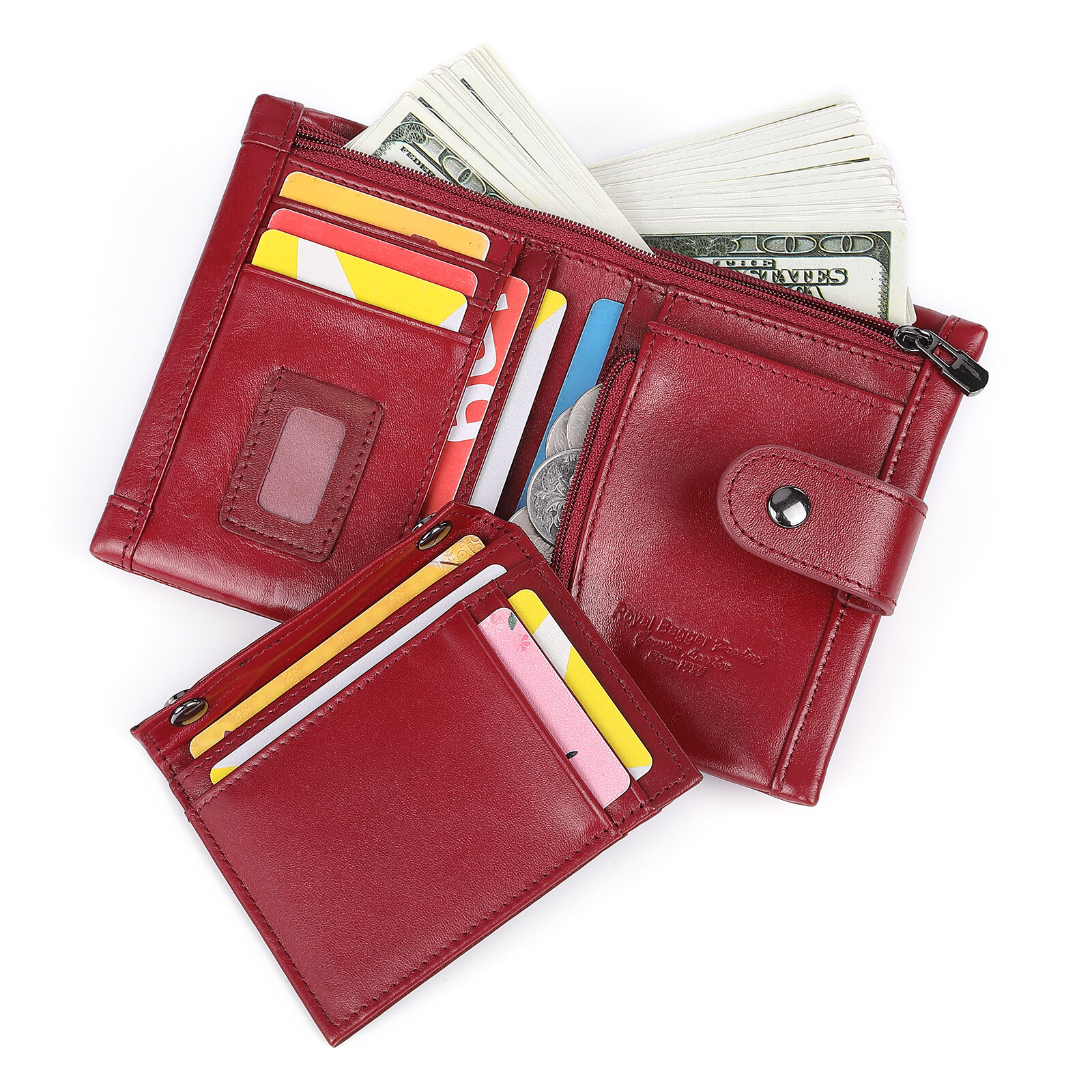 Royal Bagger 2021 New Fashion Short Wallet Purse For Women Genuine Cow Leather Elegant Clutch Bag Multi-Card Position Coin Bag Key Bag
