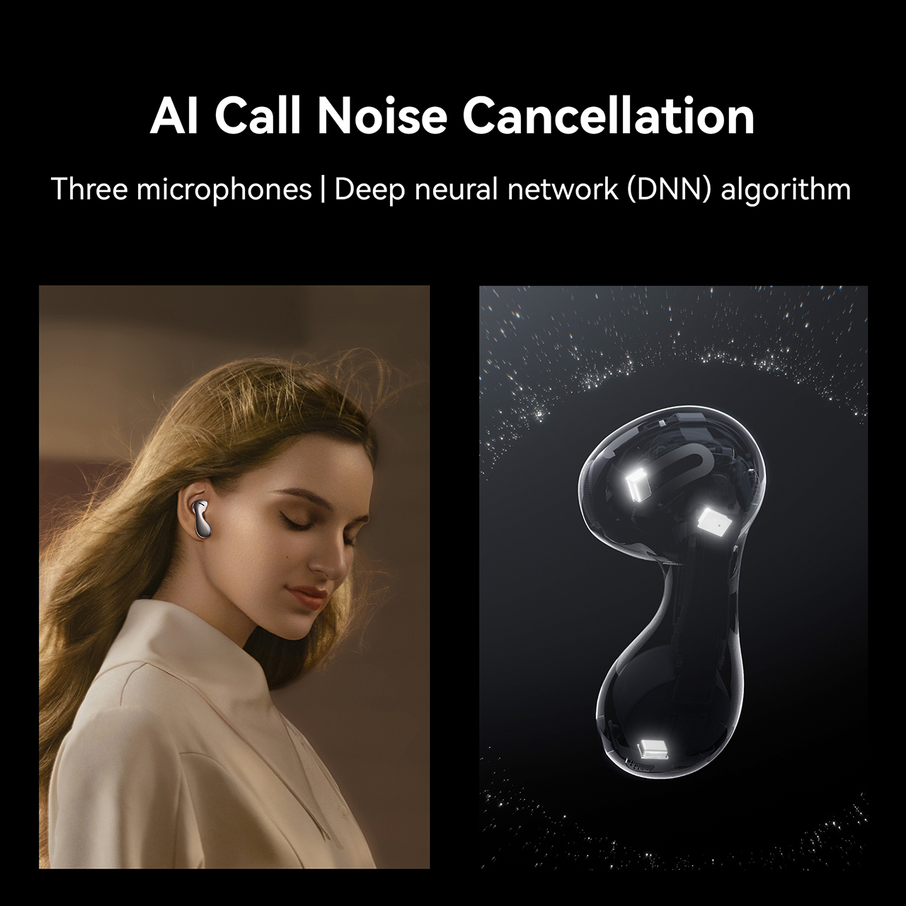 - AI Call Noise Cancellation | The earbuds come with three microphones and a deep neural network (DNN) algorithm to enhance your voice and reduce background chatter, so that every call is as clear as can be.