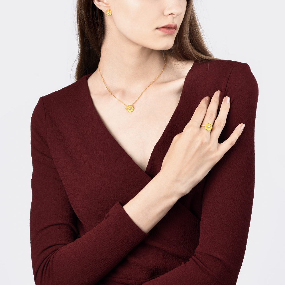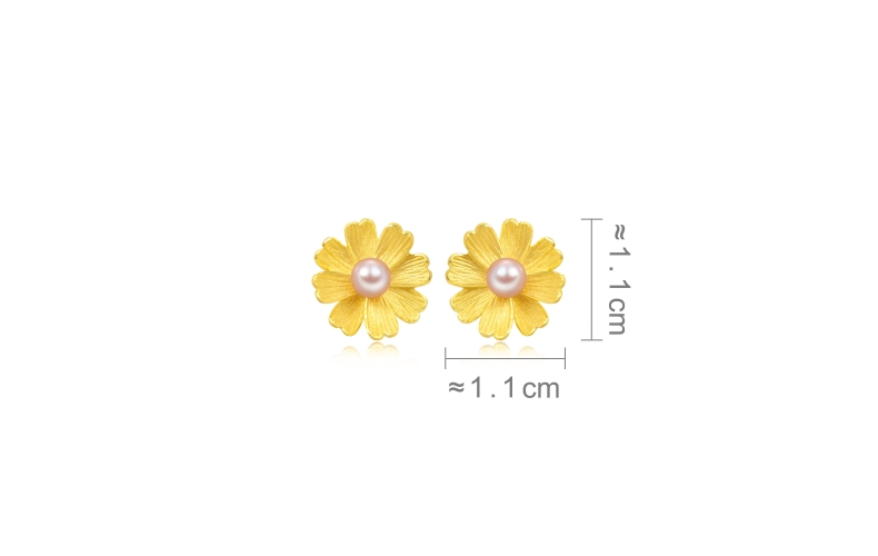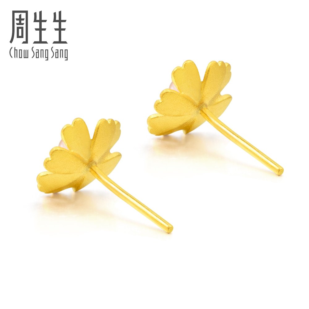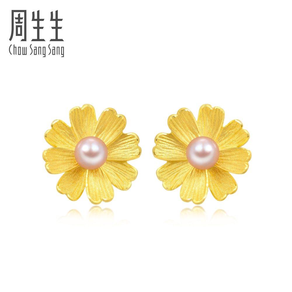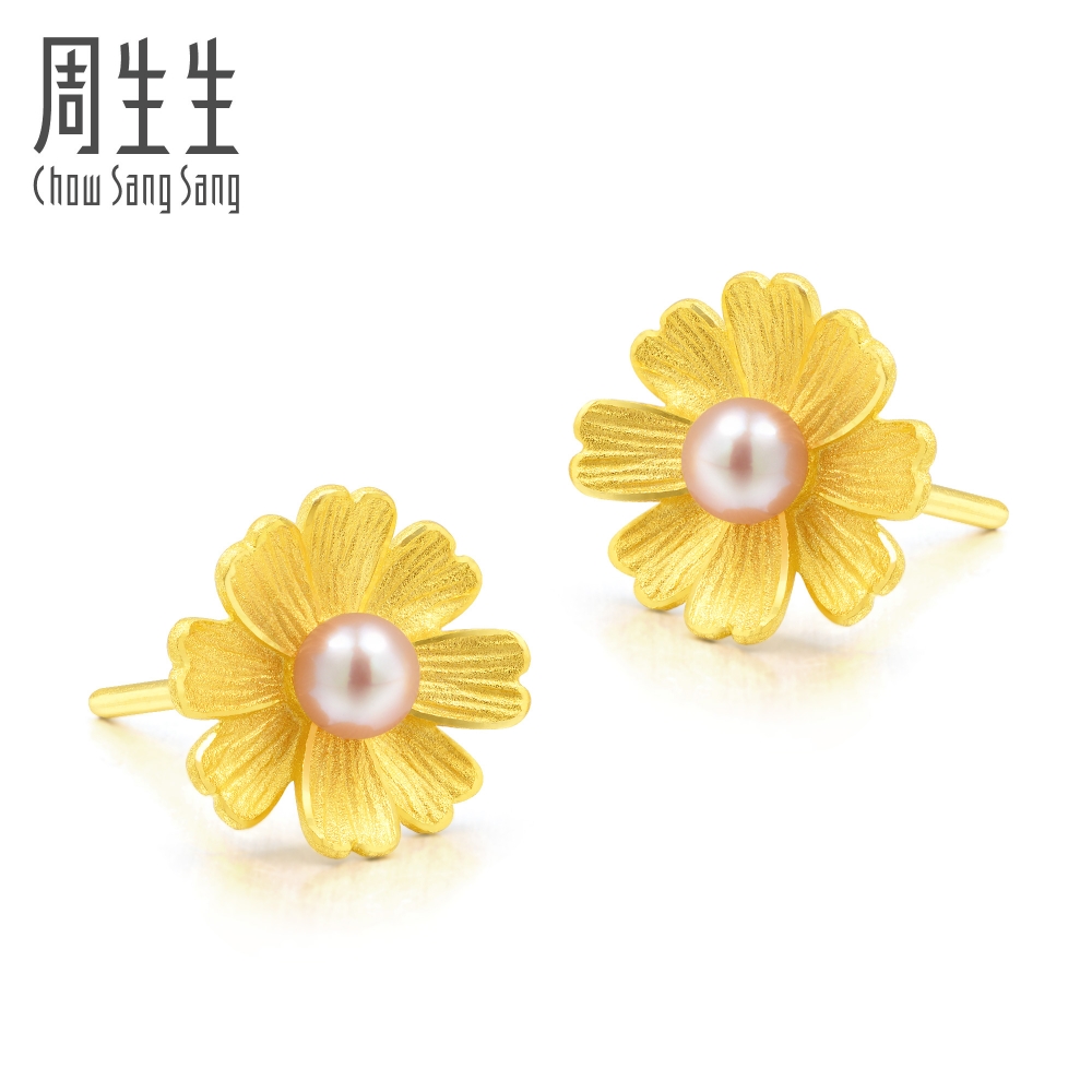 Chow Sang Sang 周生生 Cultural Blessings Blossom 999.9 24K Pure Gold Price-by-Weight Floral Gold Pearl Earrings 89694E #Spring