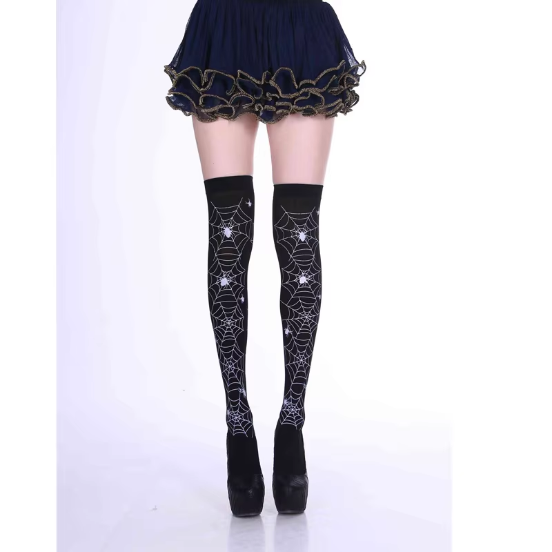 2022 New Cross Stockings Printed Halloween Socks Cross Cross Over Knee Socks Black And White Stockings For Women