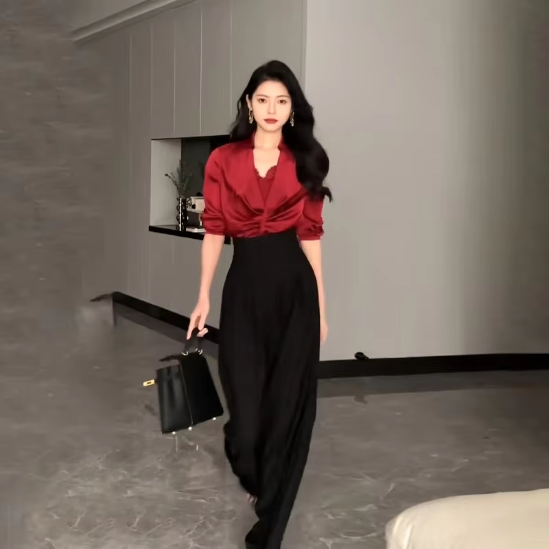 2024 Ultra High Waist Wide Leg Pants Straight Drooping Spring and Summer All-Match Trousers Thick Suit Pants Mop Pants