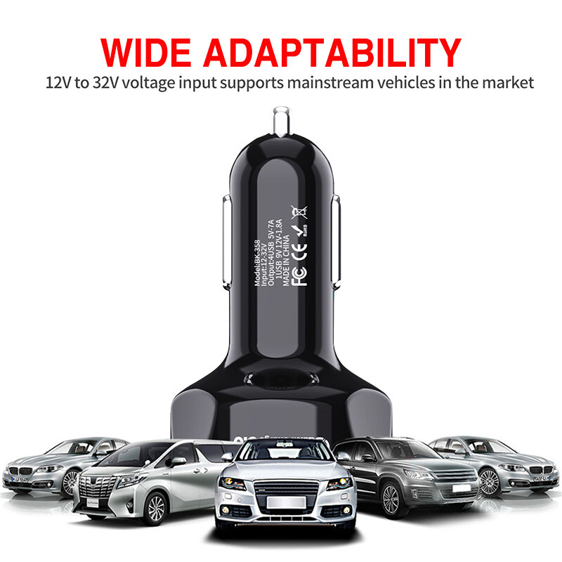 EKLEVA 4 USB Car Charger QC3.0 Fast Charging Car Charger with Four Ports Multi-function Smart Car Mobile Phone Charger 35W/7A