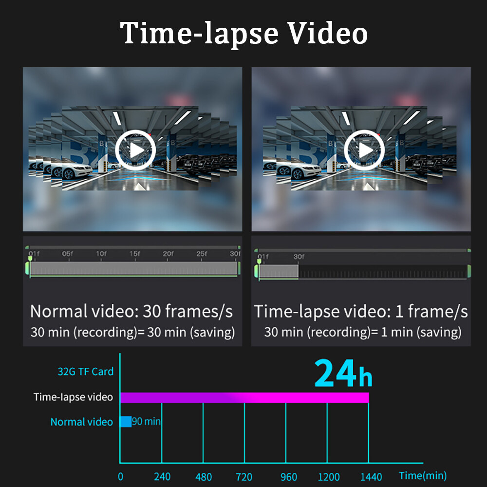 If the DVR be shocked by any external forces like a thief while parking, its Parking Mode function will turn on to record automatically(Need to buy Hardware Kit)