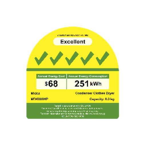 [Bulky] Midea MDK888HP White Heat Pump Dryer, 8kg, Energy Rating 5 Ticks