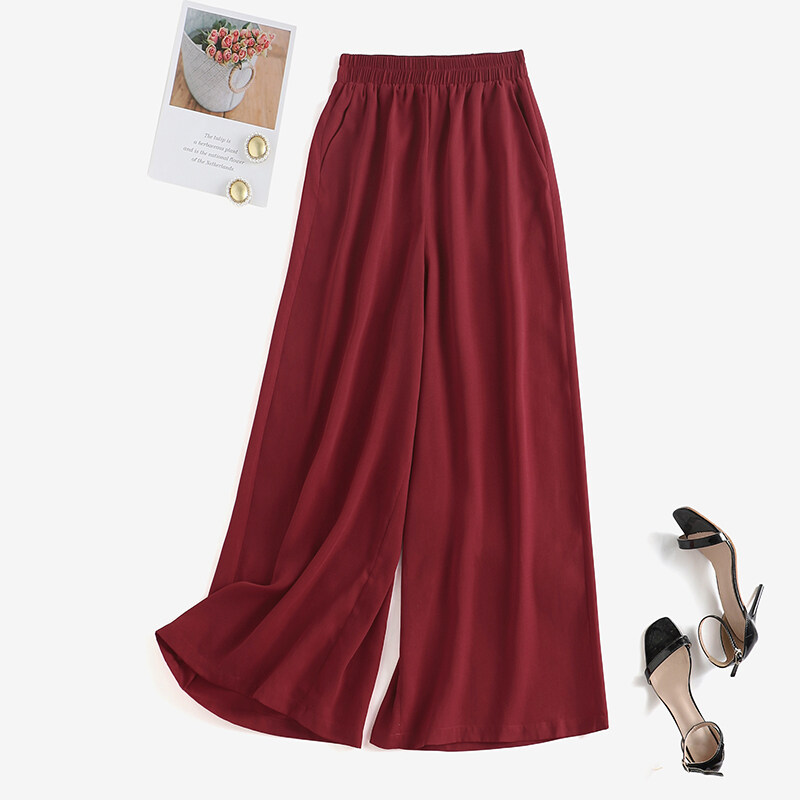 ZANZEA Women Casual Baggy Solid Color Thin Pants Wide Legs Elastic Waist Long Trousers