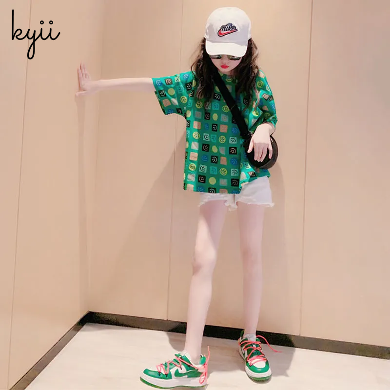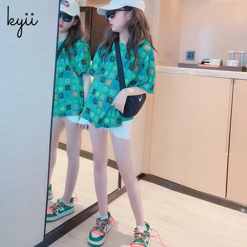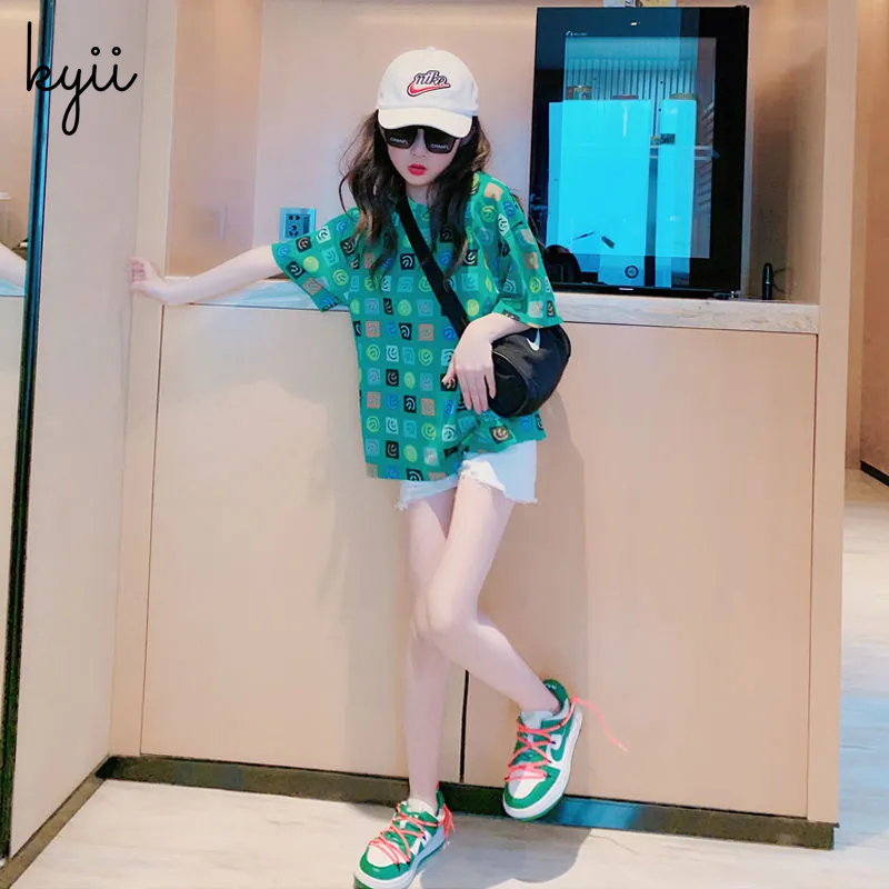 KYII Girl Summer children shirt Versatile short sleeve Top ky22137