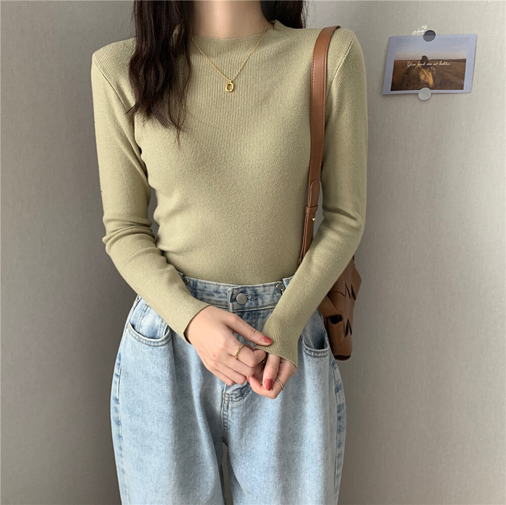 HolidayQueen 2022 Fall/Winter Full Color Basics All-match Solid Color Top Knit Sweater 15 Colors Free Shipping HQ1778