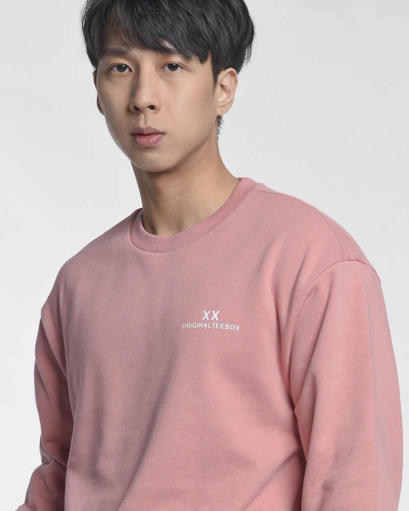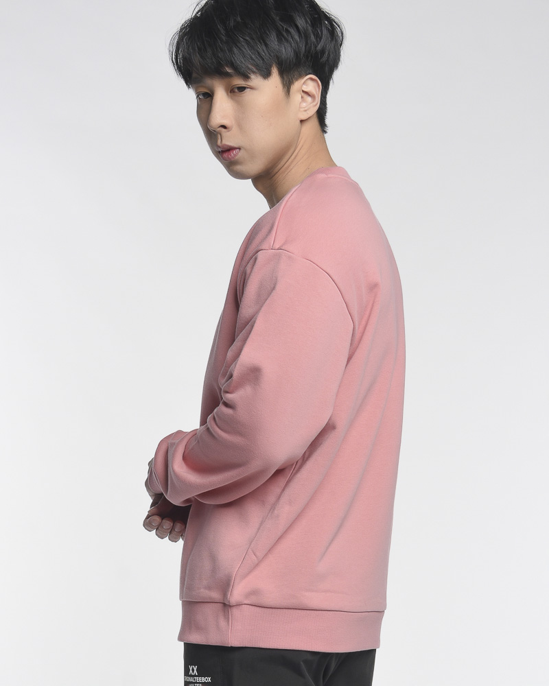 Yishion Men Oversized Solid Coloured Long Sleeve Sweatshirt with "ORIGINALTEEBOX" Logo (Pink)