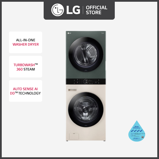 [Bulky] LG Front Load WashTower WT2116NHEG 21/16kg Objet Collection(Nature Green / Nature Beige) + Free Delivery + Free Installation + Free Disposal