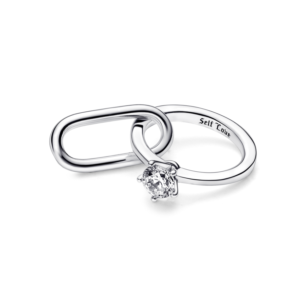 Commit to the most important person in your life - yourself - with the Pandora ME Marry Me Double Link. Hand-finished and engraved with the reminder "Self love", this sterling silver double styling link features a rounded rectangular link connected to a small solitaire ring. Wear yours between styling connectors on your Pandora ME link chain bracelets or necklaces, or hang it on a pair of hoops for a unique statement.