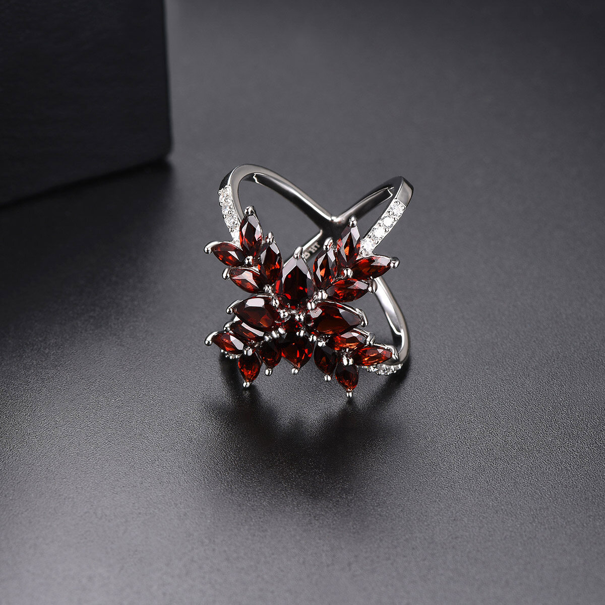 Real Garnet Women's Ring Solid 925 Sterling Silver Natural Red Gemstone