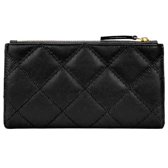 Tory Burch Wallet With Gift Paper Bag Willa Quilted Leather Slim Envelope Wallet Black # 89490