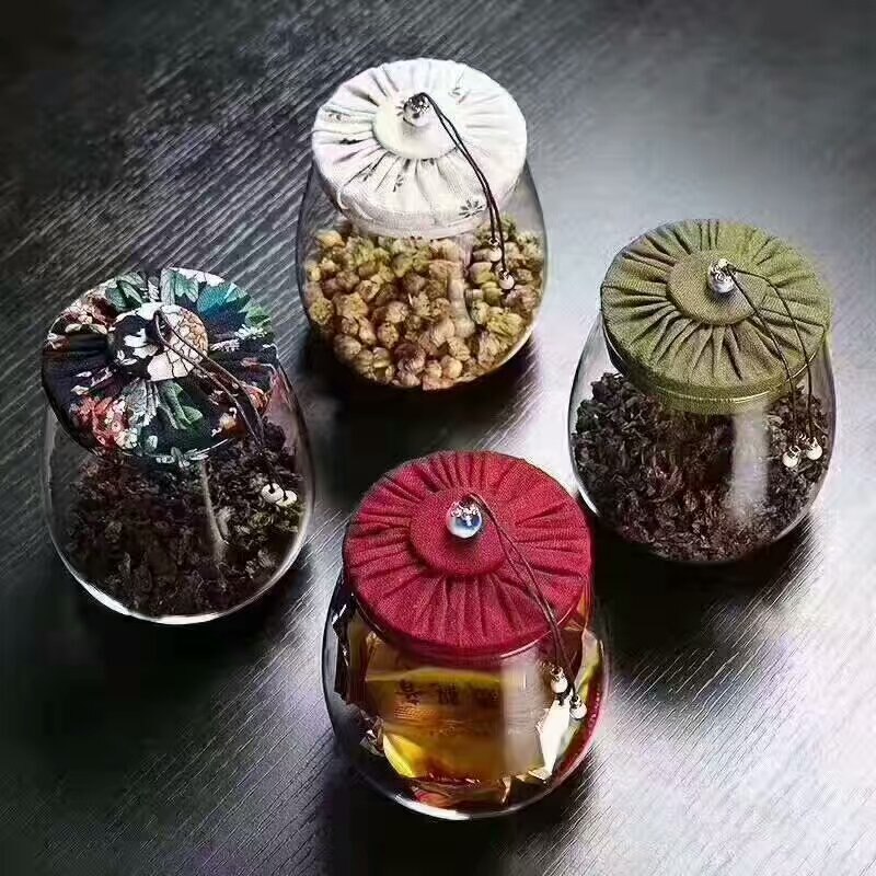 New Flower Cloth Cover Tea Jar Transparent Glass Storage Sealed Household Candy Girl Gift Box Coffee Container Can Organizer