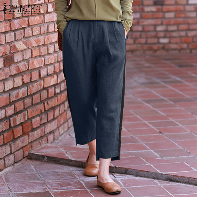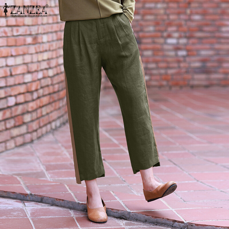 ZANZEA Women Vintage Causal Cotton Linen Irregular Trousers Back Elastic Waist Harem Loose Pants #8