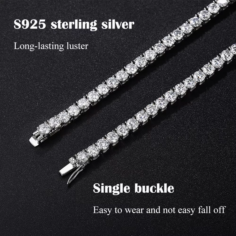 FEOBUR 3/4/5/6.5mm Real Moissanite Tennis Necklace Bracelet for Women Men 925 Sterling Silver Lab Diamond Neck Chains Party Jewelry GRA