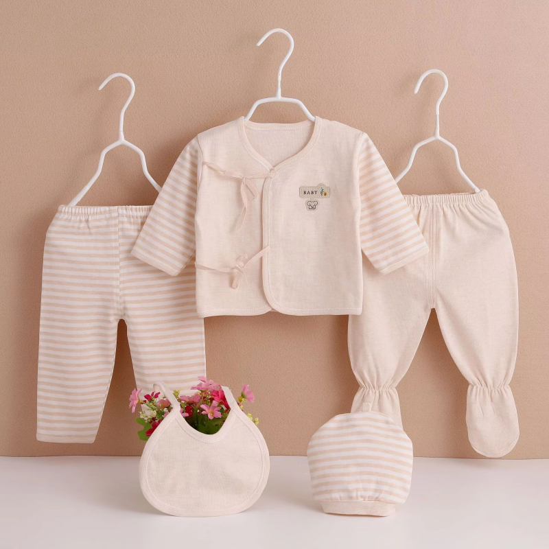 5Piece Sets Spring Baby Girl Boy Clothes Casual Cartoon Cute Print Long Sleeve Cotton Tops+Pants+Hat Newborn Hospital Set BC1361
