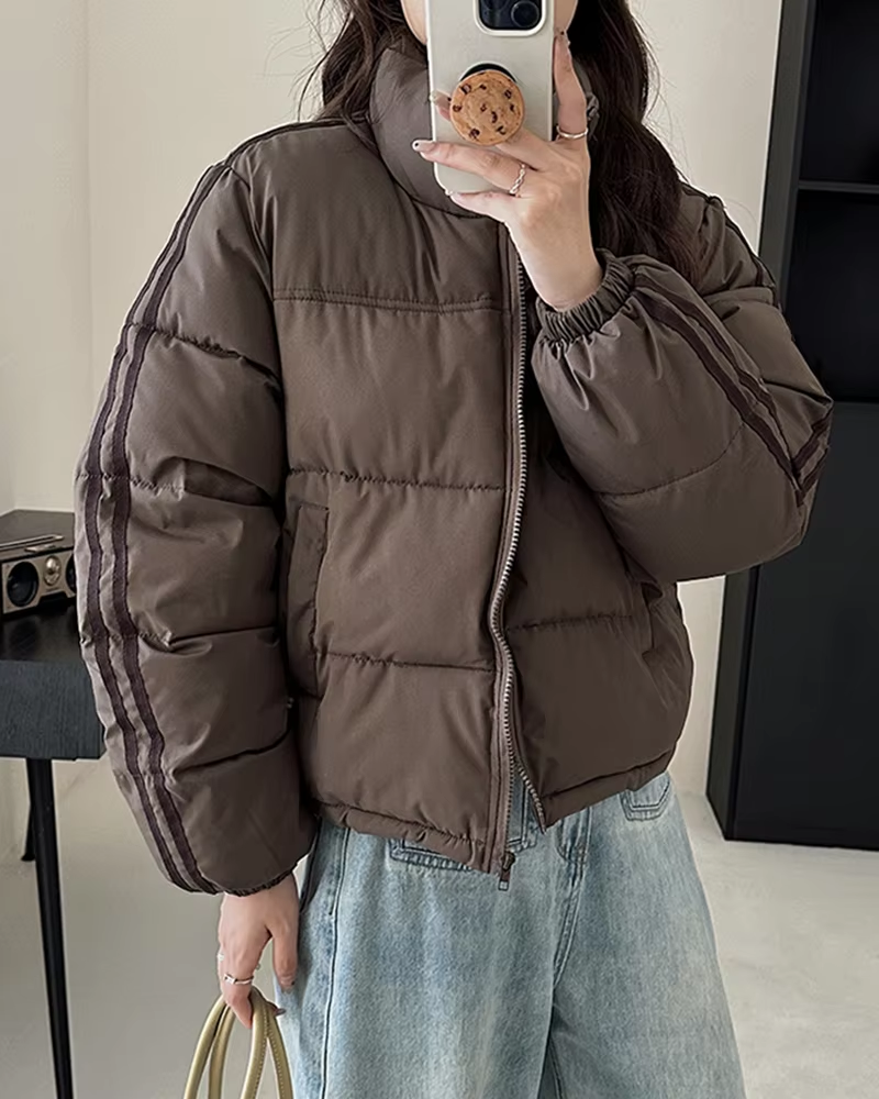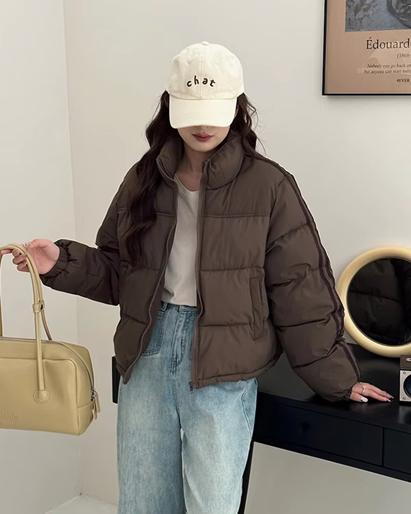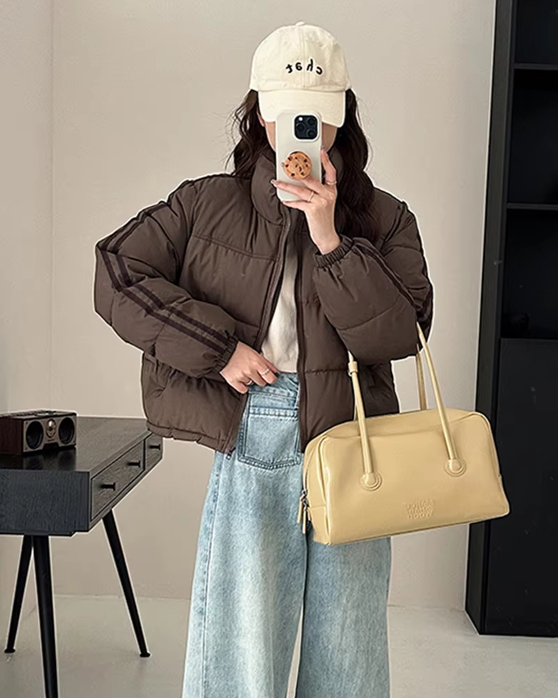 American Vintage Short Parkas Women Casual All Match Loose Striped Turtle Neck Short Down Coat Female Thick Warm New Outerwear