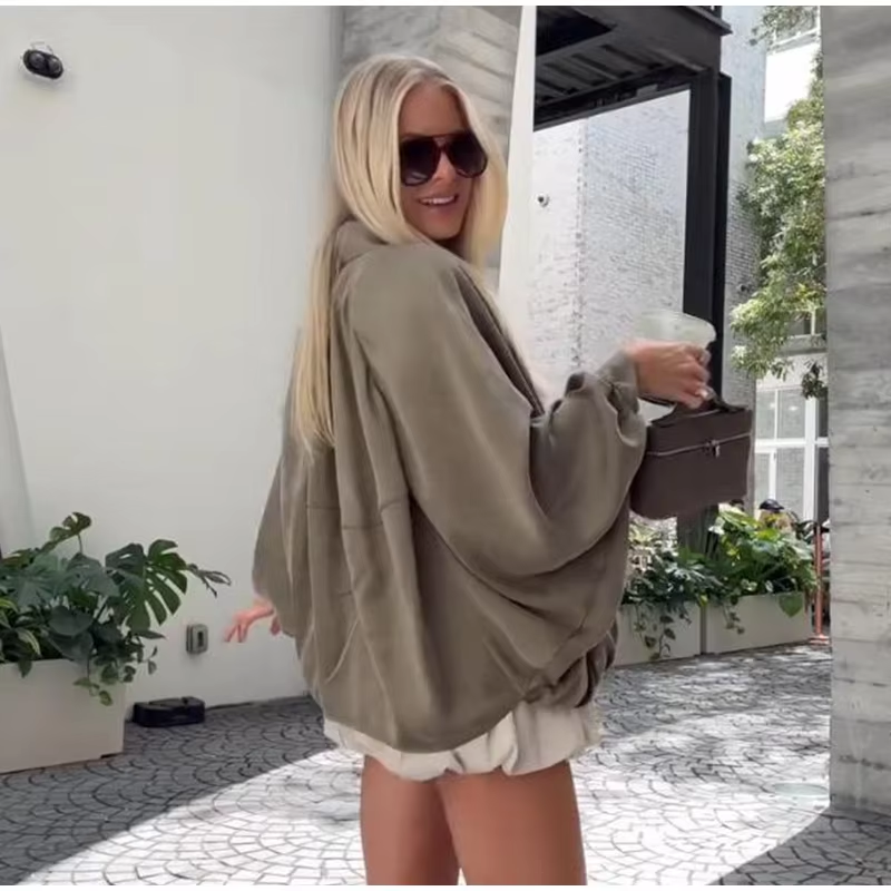 Casual Women Lapel Suede Jacket Women Long Lantern Sleeve Army Green Zipper Short Loose Coat 2025 New Spring Street Lady Outfits