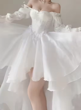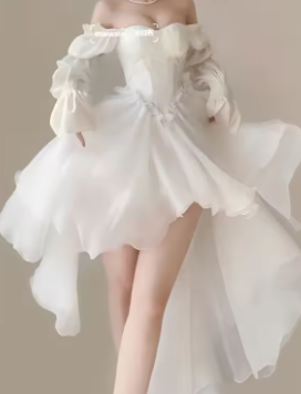 Elegant Heavy Off Shoulder Dresses Early Spring New White Dress for Women Y2k Slim Waist Long Sleeve Vestidos De Mujer
