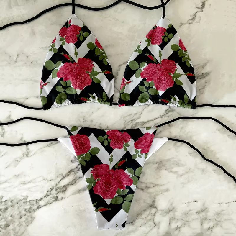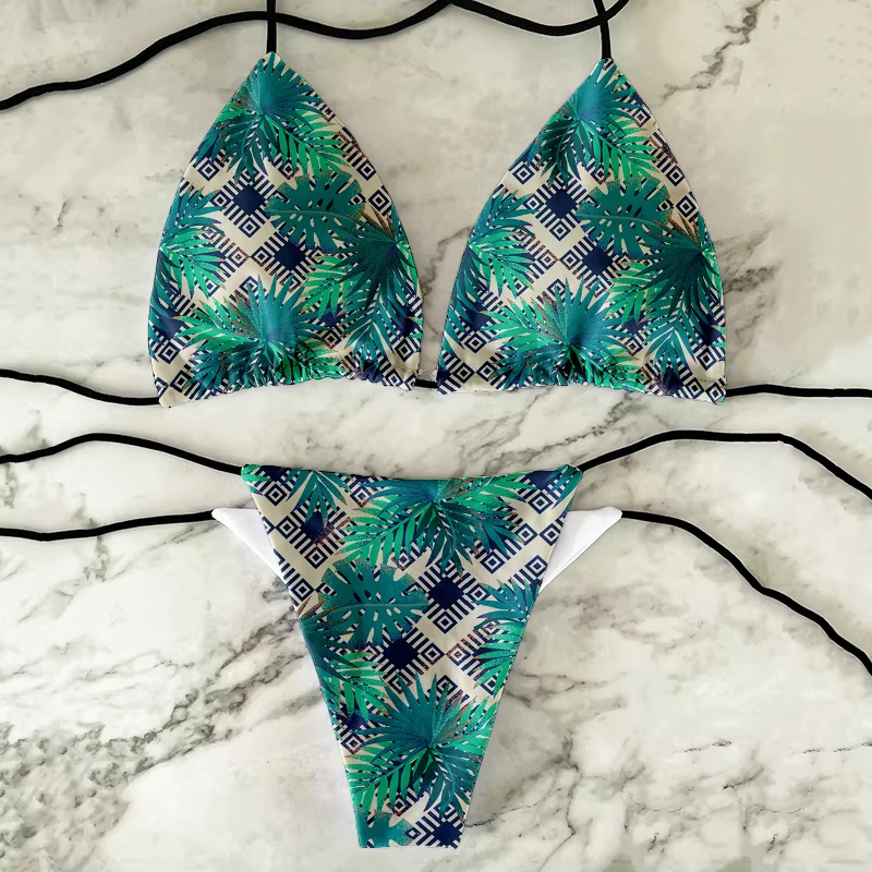 European And American Sexy 2023 Bikini Printing Bra With Pad Set Triangle Cup Split Swimsuit Two-piece Female Beach Sunbathing