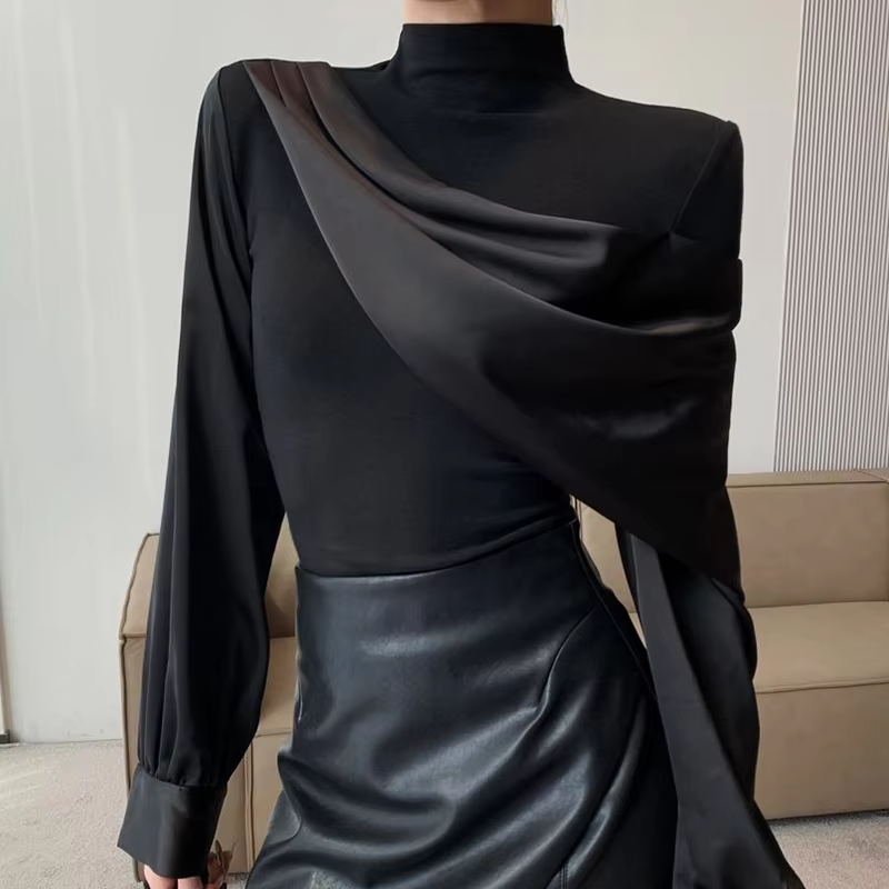 French black stitching design long-sleeved shirt women's spring and autumn new fashion luxury temperament niche Joker casual top