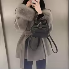High End Double-sided Wool Strapping Real Wool Fur Coat Women's Removable Cuffs Fox Fur Temperament Cashmere Short Jacket