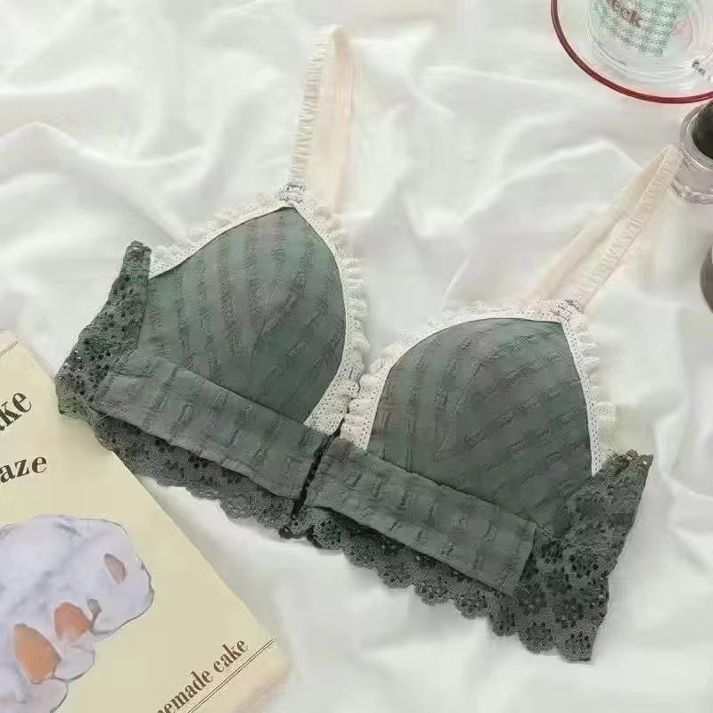 Japan Korean Front Closure Girls Sweet Lace Bra Wire Free Comfortable Underwear Women Graceful Breathable Undies Lingerie Female
