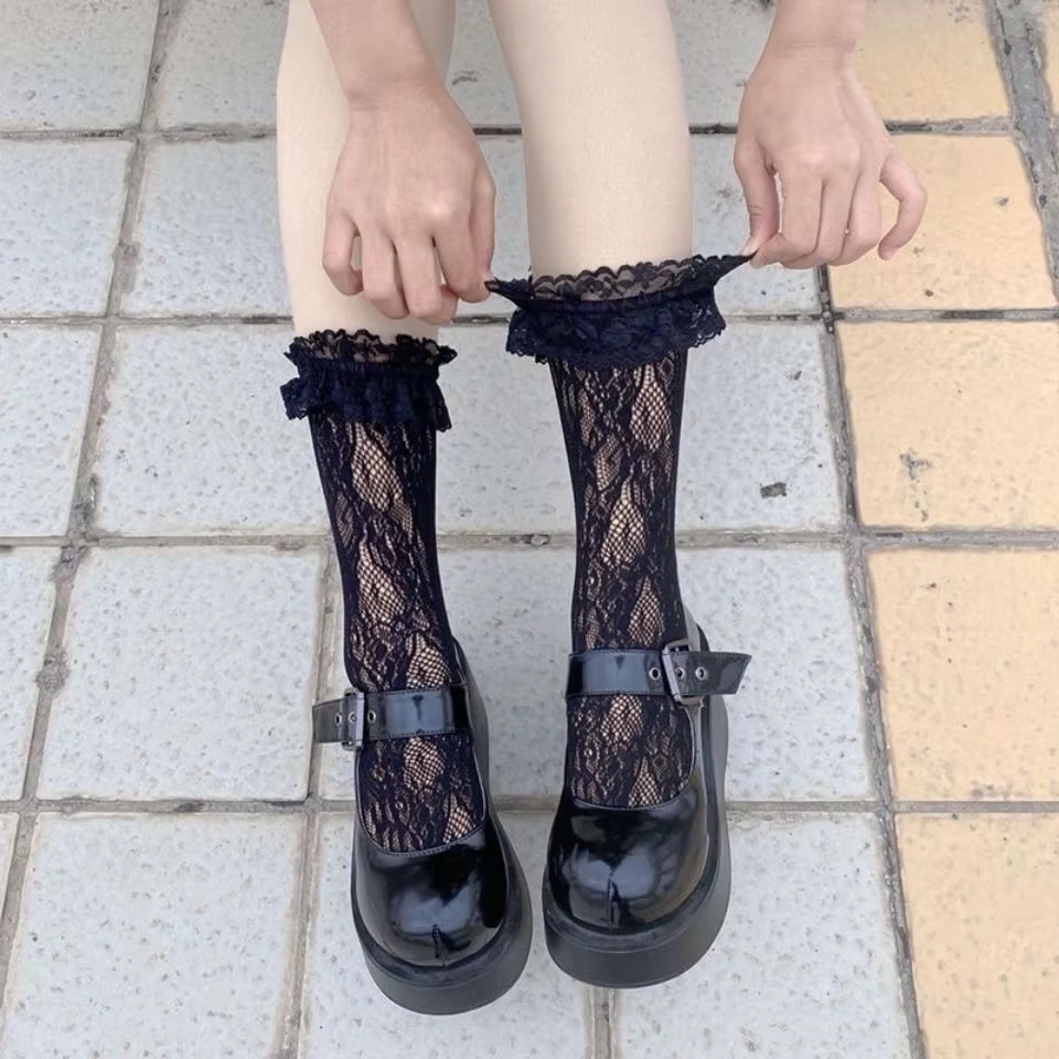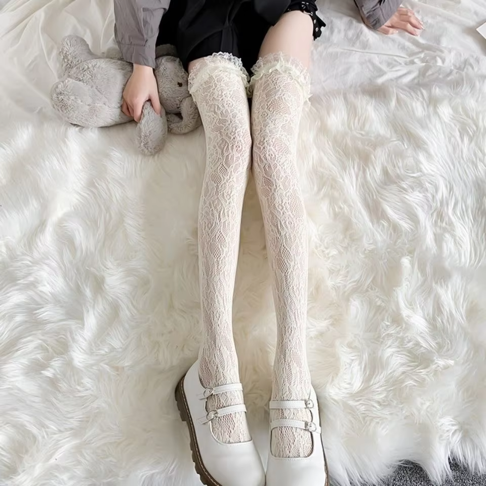 Lolita Long Lace Over The Knee Socks Lolita White Silk Calf Socks Summer Thin Jk Lace Socks High Knew Thigh High JK Socks