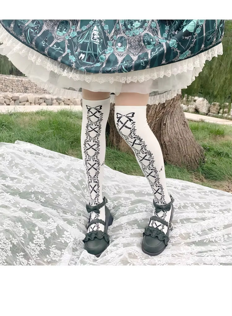 Lolita Socks JK Girl Cross Tie Bow Knee Socks Cosplay JK Stockings Over The Knee Socks Cute Cotton Thigh Socks High Lolita Socks