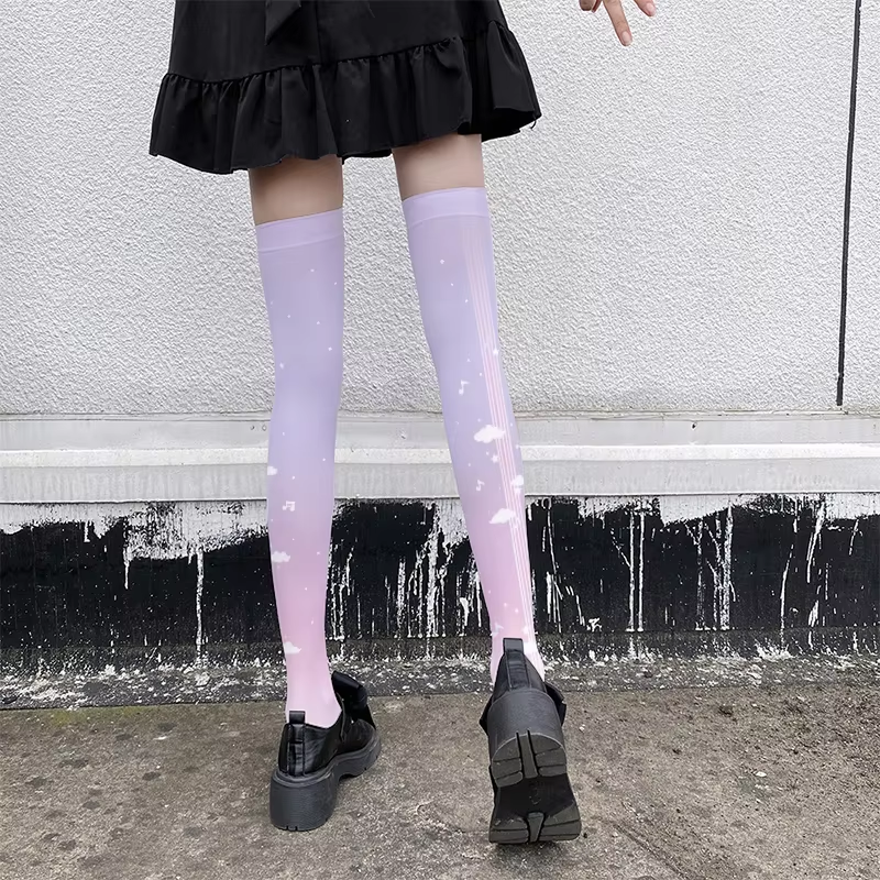 New Knee Stockings Women's Fashion Harajuku Gradient Pink Blue Kawaii Lolita JK Girls Sexy Thigh Stockings Birthday Gifts