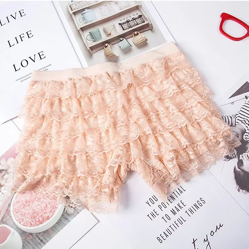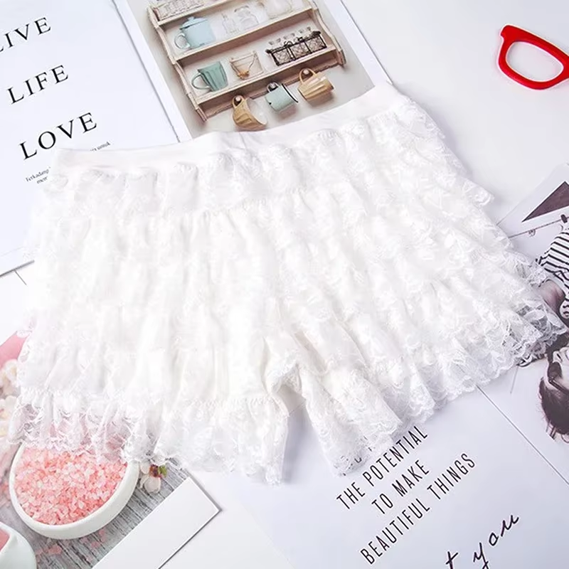 Ruffle lace safety short pant elastic Lolita casual bow safety shorts bottoming culottes anti-walking shorts summer thin section
