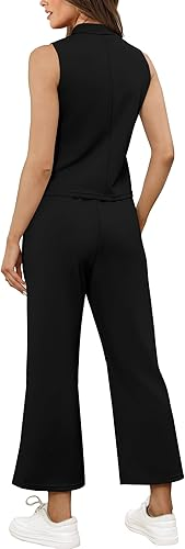 Design:Two Piece Sets for Women Mock Neck Sleeveless Tops,Wide Leg Crop Pants,Cropped Length,Contoured Back for The Most Flattering Rear View,Elastic Drawstring