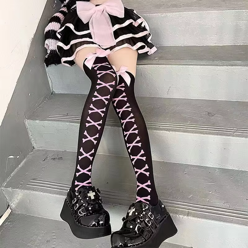 Subculture Classic Lolita Black Goth Cute Stockings Halloween Girls Gothic Punk Retro Spider Web Skull Bat Thigh High Long Socks