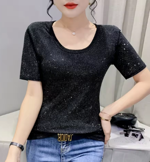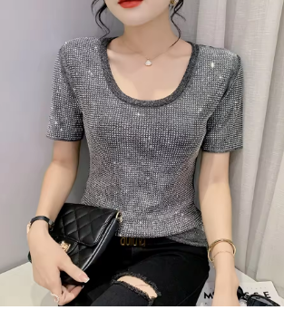 Summer European Clothes T-Shirt Chic Sexy Shiny All Diamonds Women Tops Short Sleeve Bling Hand Make 2022 Tees