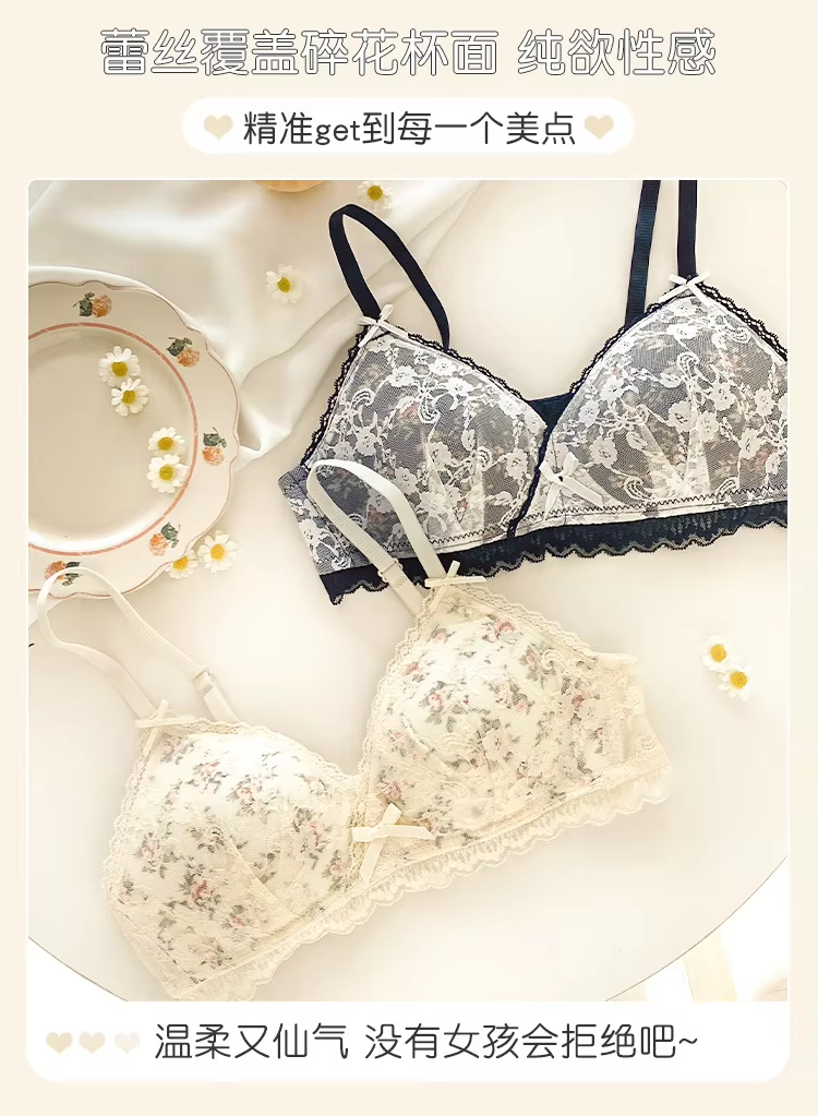 Summer Sexy Lace Tube Top Women Fragmented flowers Bralette Thin Chest Girl Bras Seamless Transparent Lingerie French Underwear