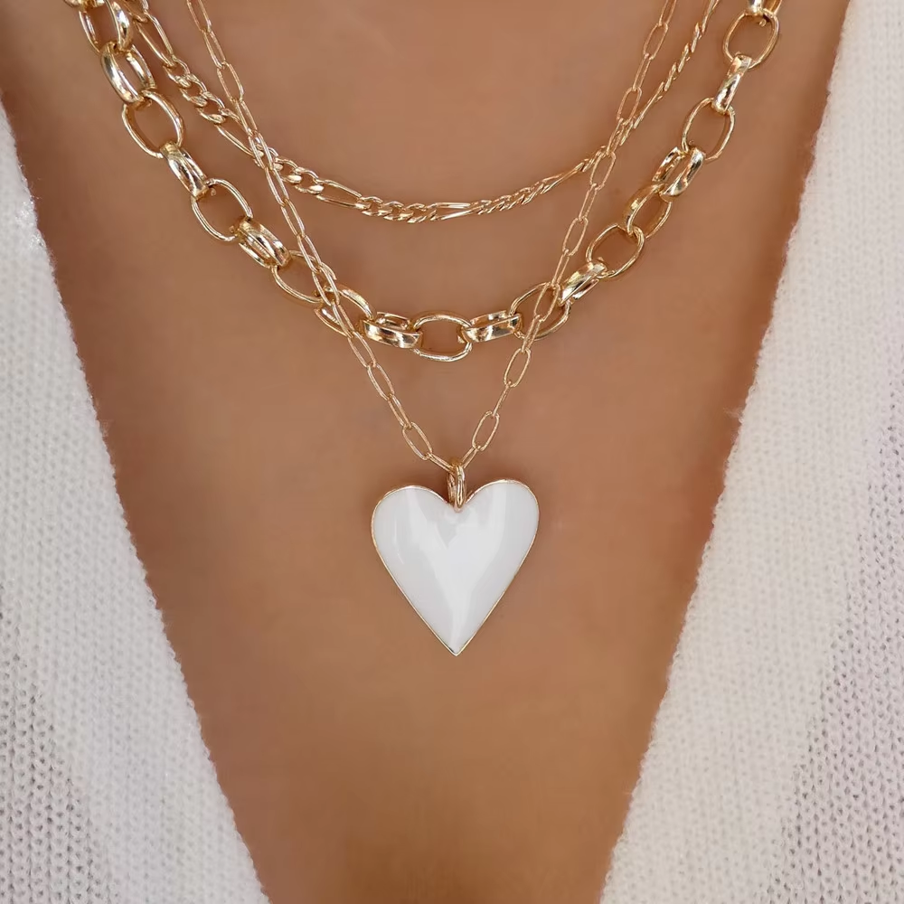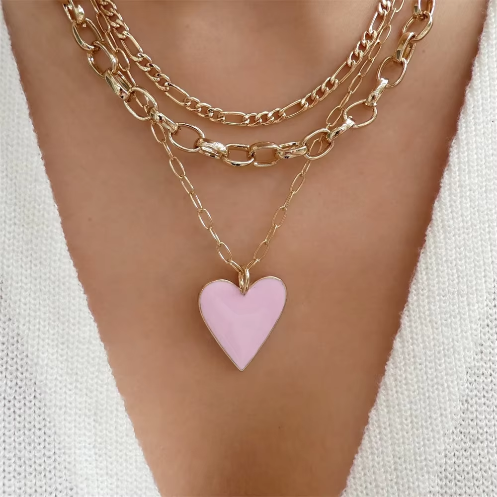 Vintage Gold-plate Punk Multi-level Flower Chain Drop Oil Red Heart Pendant Necklace For Women Girl Fashion Choker Trend Jewelry