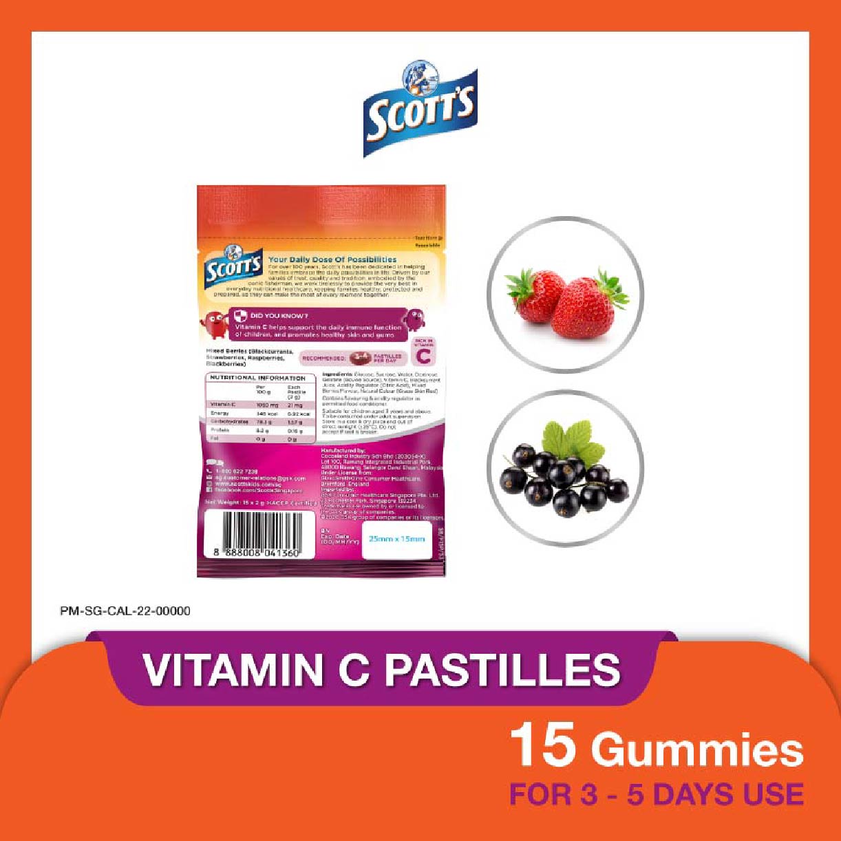 SCOTTS Vitamin C Mix Berry Flavour 15 Pastilles