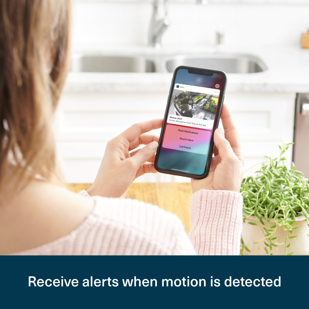 Smarter alerts, quicker action - Receive notifications for people, vehicles, and packages so you can take quick action such as sound the siren, call a friend or dial emergency services, with the included, Arlo Smart trial