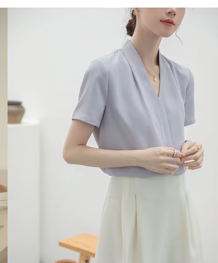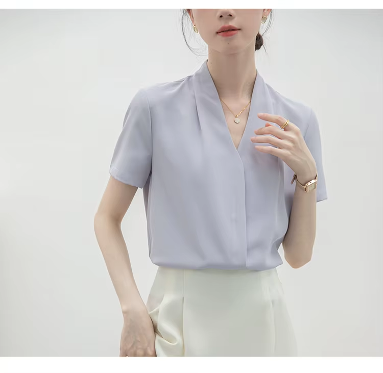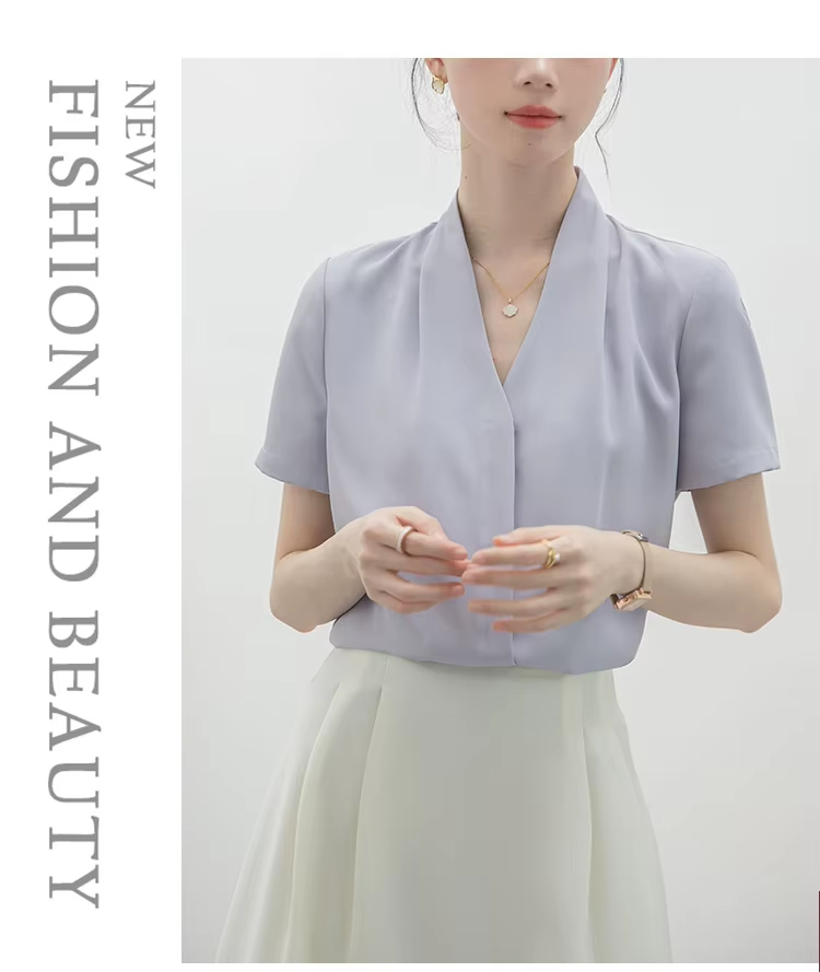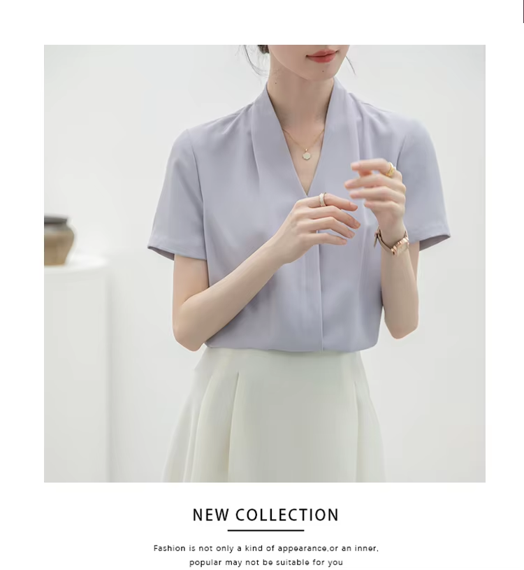 2025 Fashion Summer Short Sleeve V-Neck Women Blouse White Blouse Shirt Women Tops Blouses Shirts Blusas Para Mujer Camisas XL86
