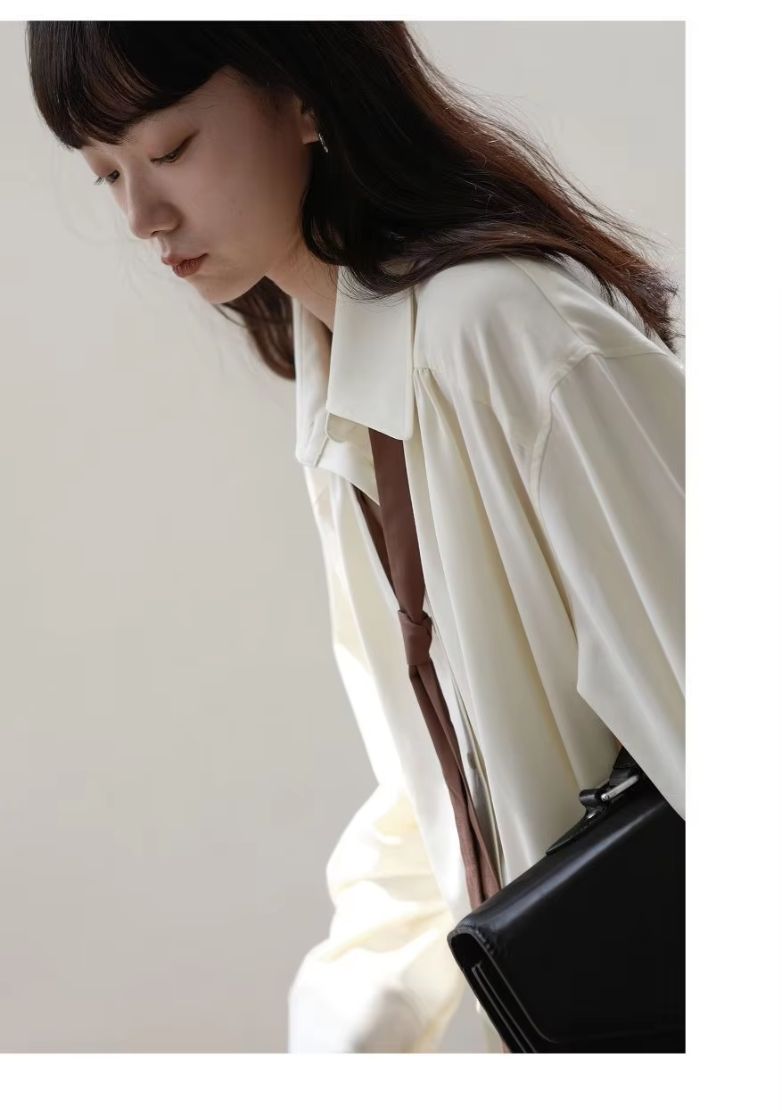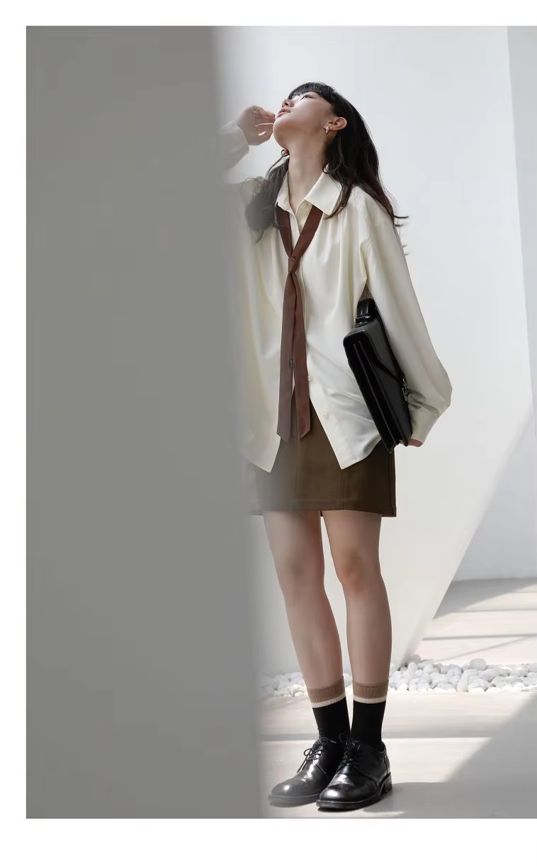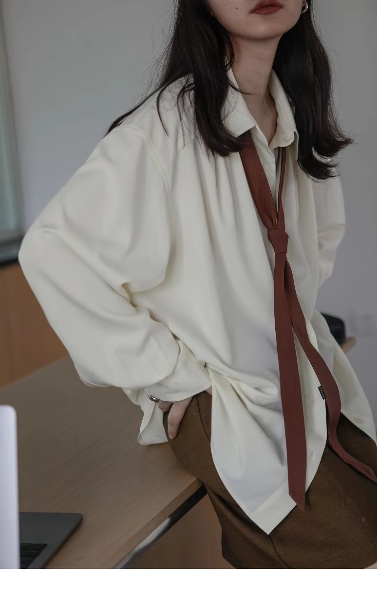 2025 Spring Minimalist Long Sleeve Button Up Shirt Women Korean Style Solid Tie Oversize Shirts Blouse Loose Clothes Autumn Tops