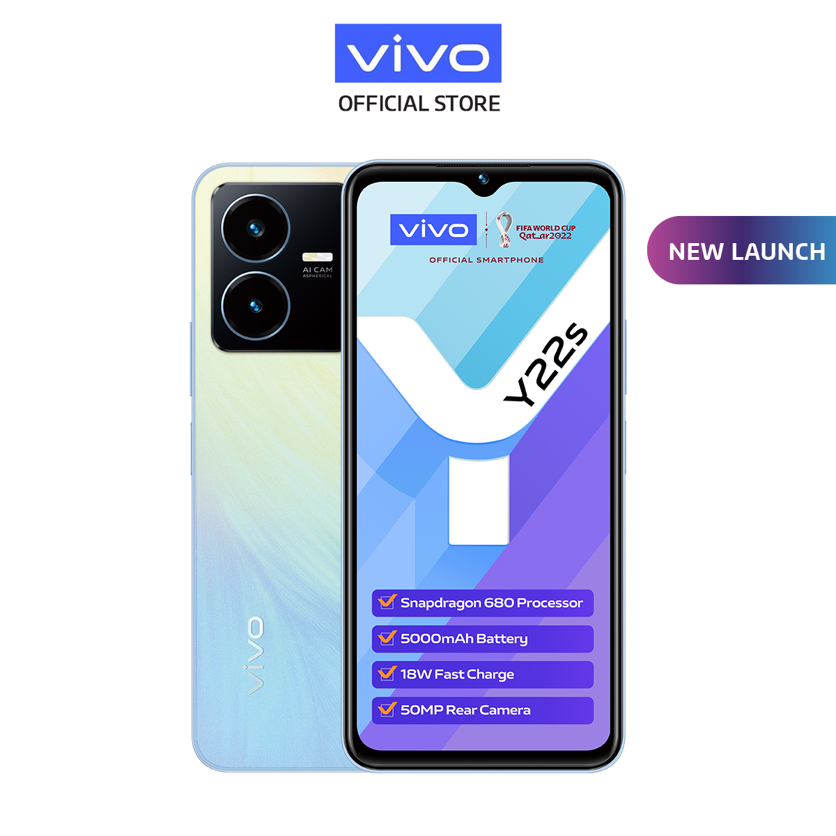 vivo Y22s [6GB + 6GB Extended RAM] / 5000mAH + 18W Fast Charge / 50MP Rear Camera