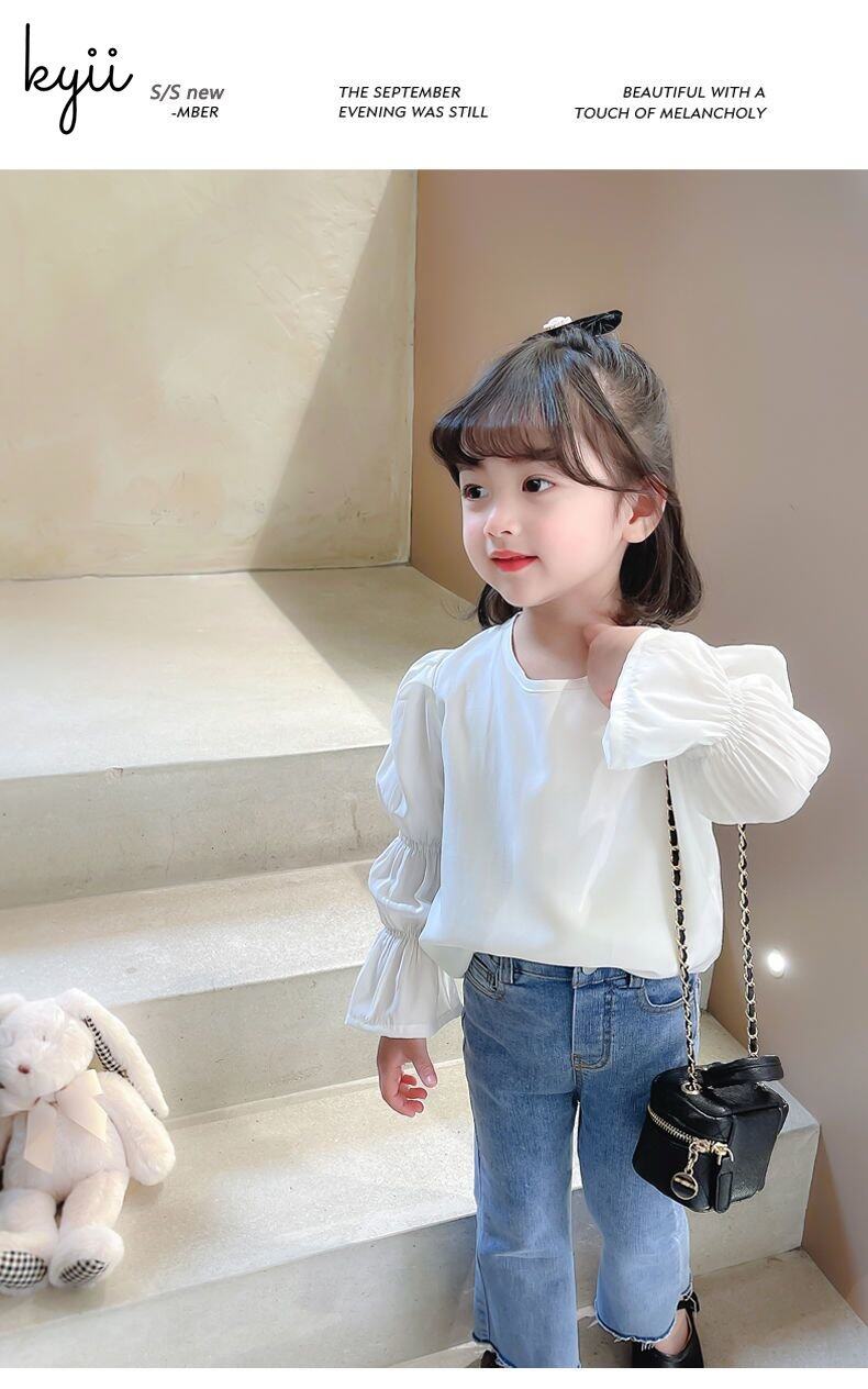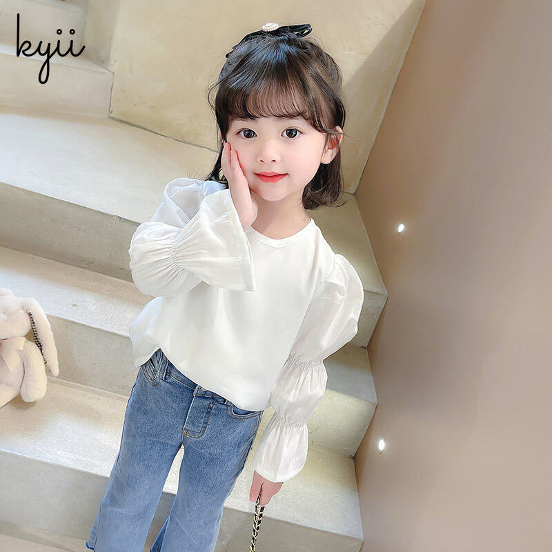 KYII Girls Long Sleeve summer children Cotton Korean Round-neck Top kyii0196