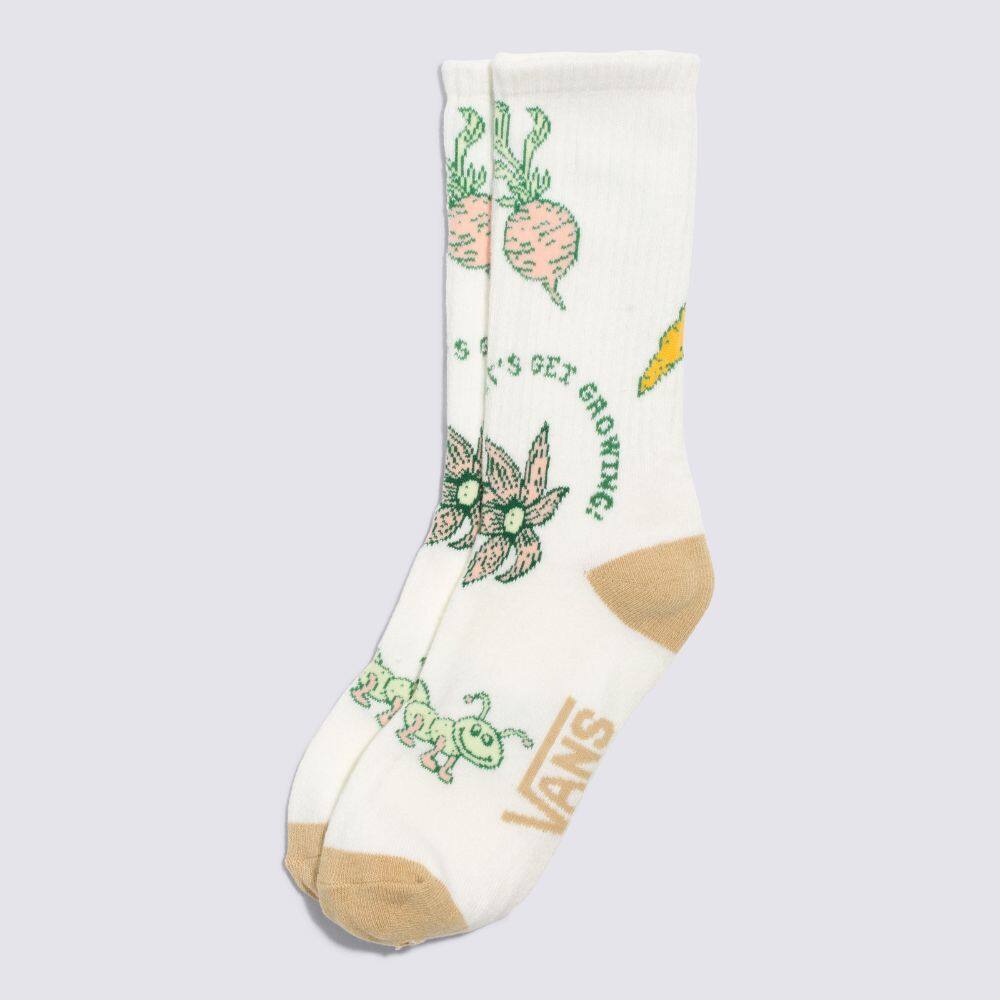 Vans Growth Garden Crew Socks (Size 6.5-10, 1 Pack) Women WHITE VN0007A3FS81