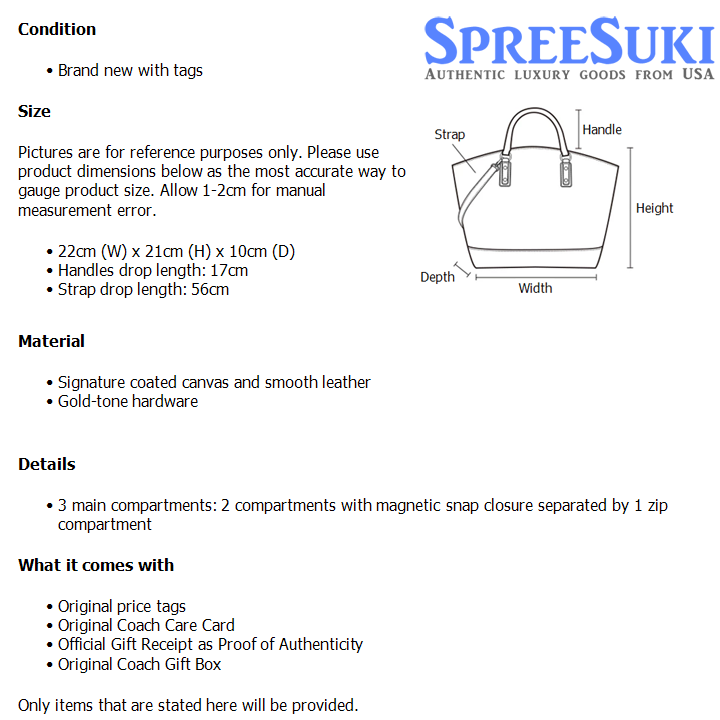All our products are 100% authentic and purchased from Coach stores in USA. We are a reputable registered business in Singapore and it is illegal to sell counterfeit goods in Singapore. This product also comes with a gift receipt which is printed by the Coach store that we purchased the item from. It states the item that we purchased and the Coach store that it was purchased from, proving the authenticity of the item. Buy with confidence.