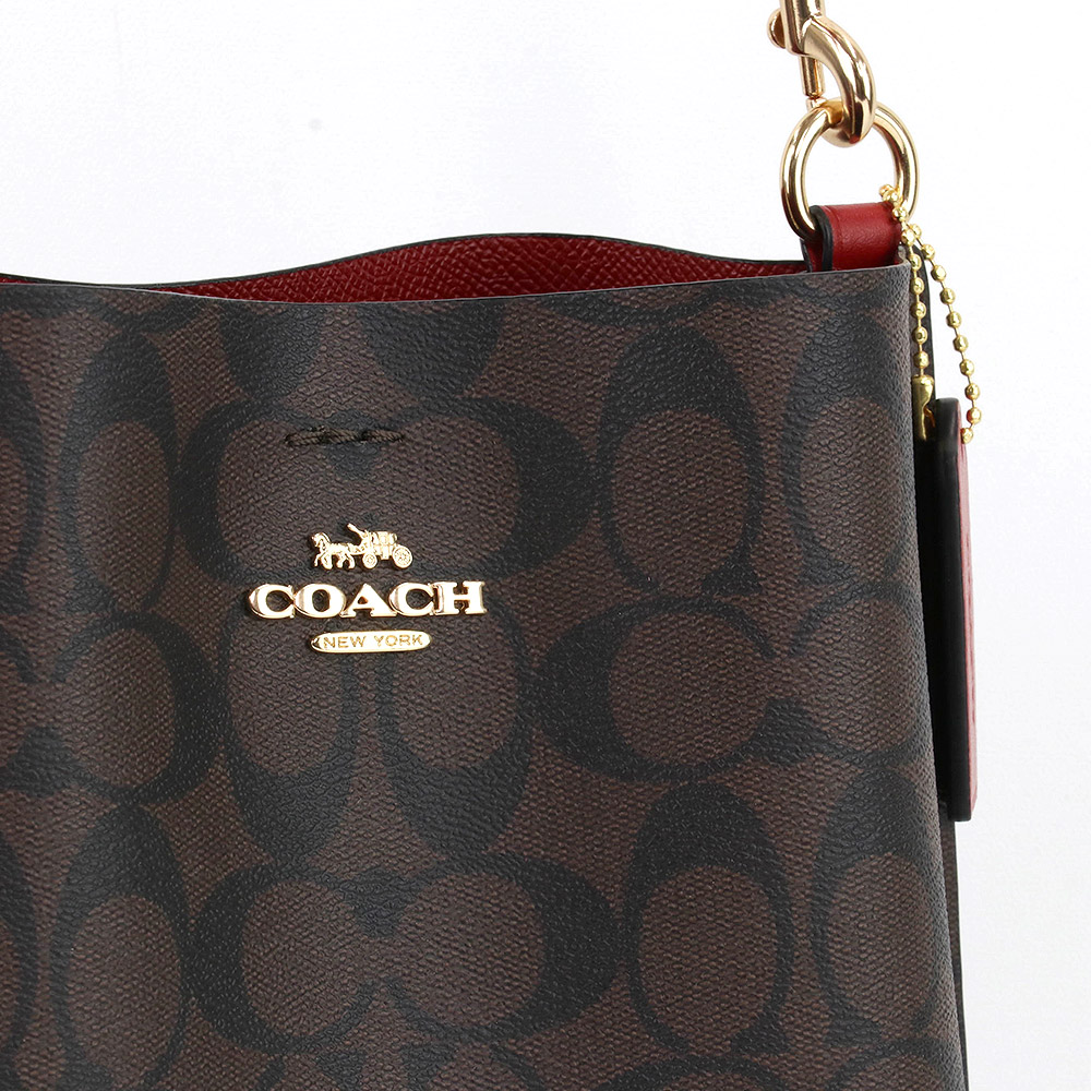 Coach Handbag In Gift Box Crossbody Bag Mollie 22 In Signature Canvas Bucket Bag Brown 1941 Red # CA582