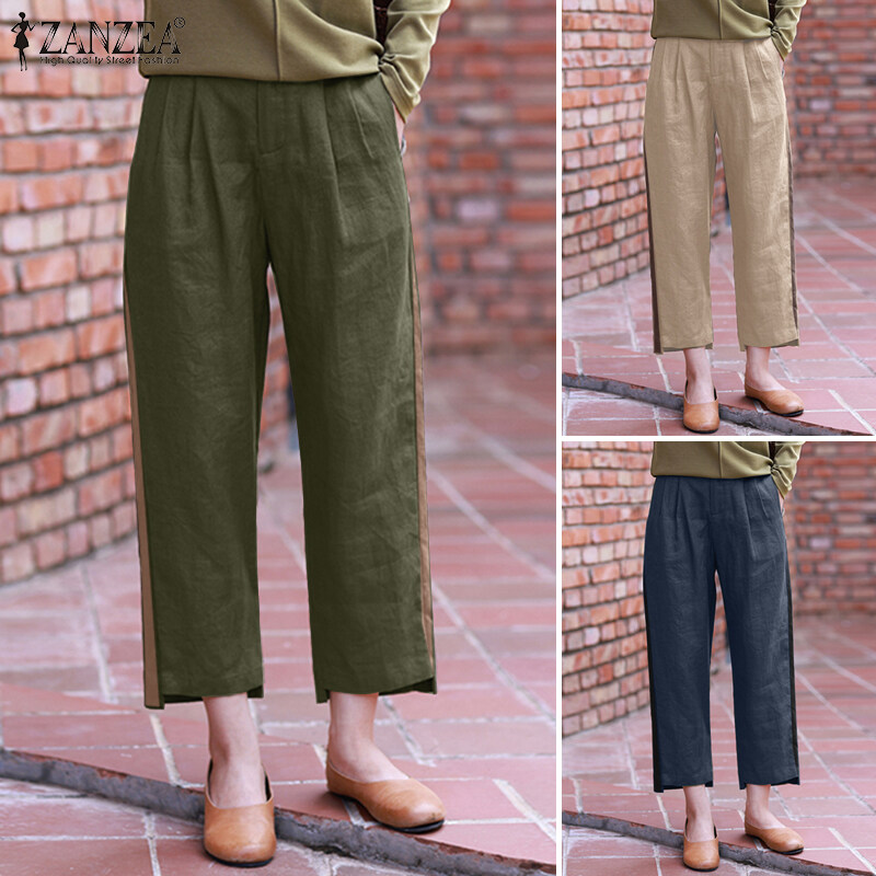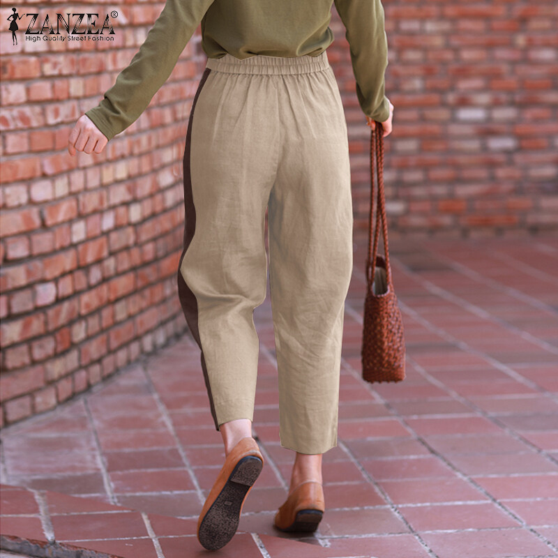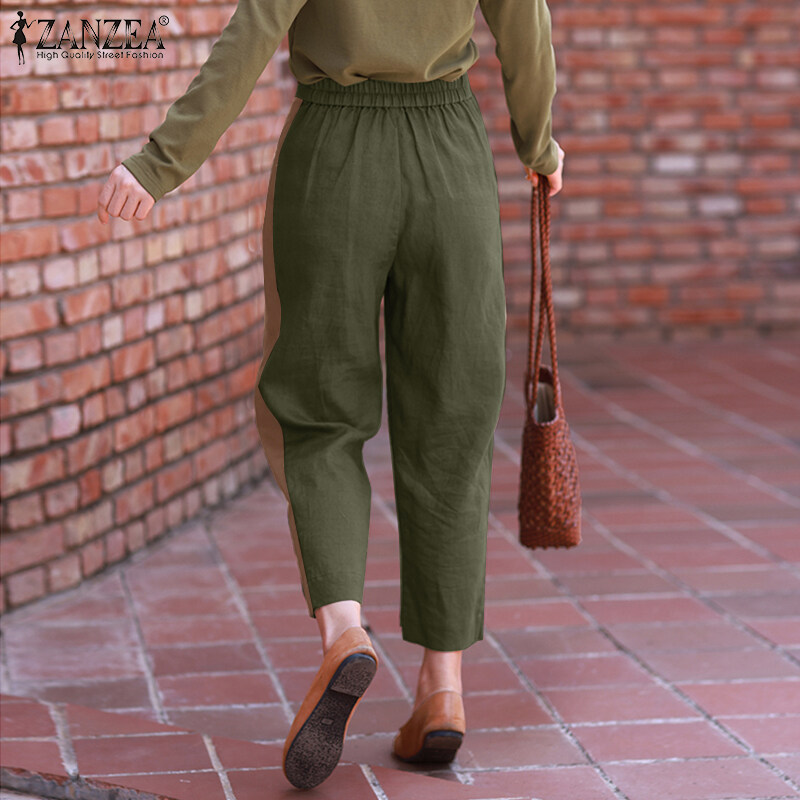 ZANZEA Women Vintage Causal Cotton Linen Irregular Trousers Back Elastic Waist Harem Loose Pants #8