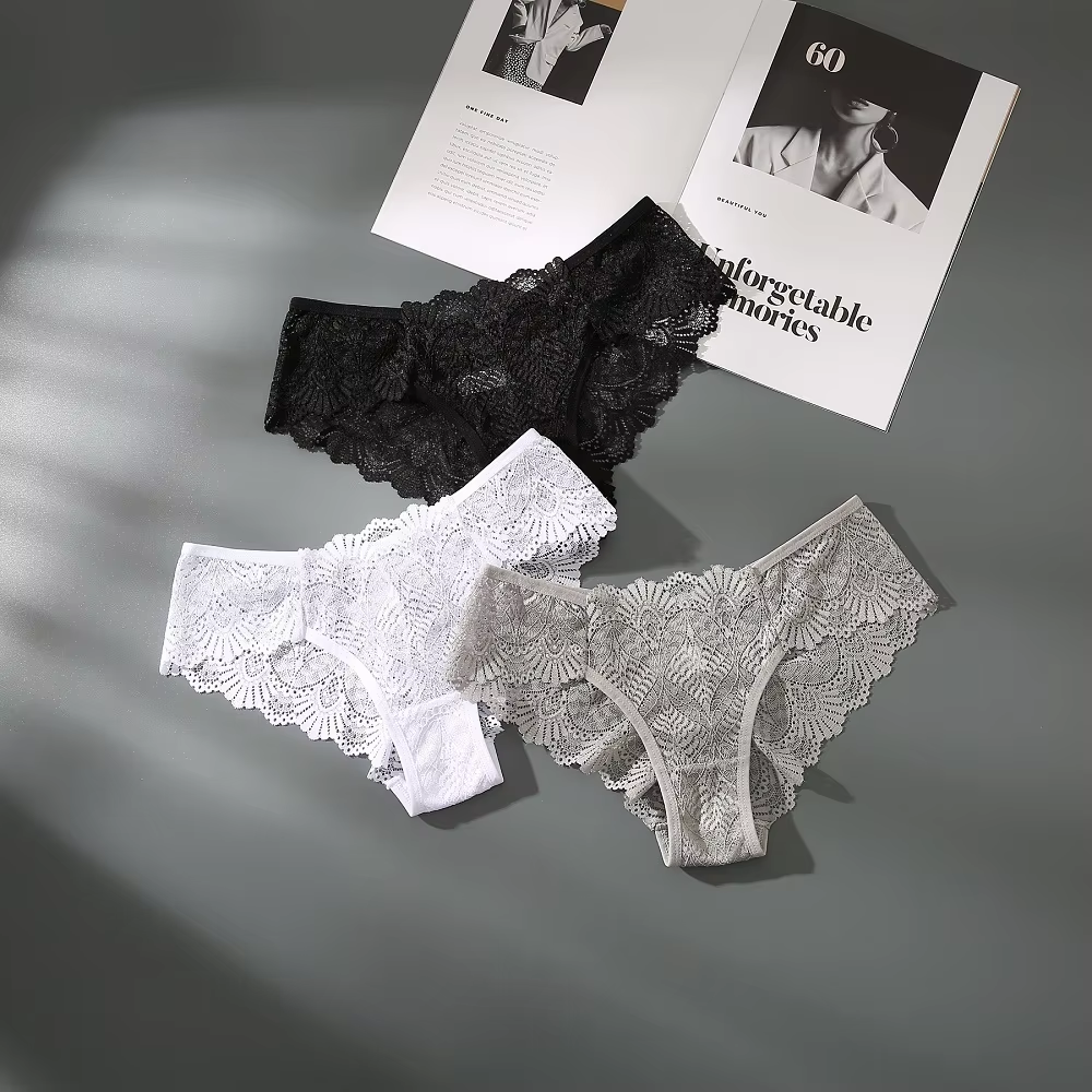 3pcs/lot Sexy Ladies Lace Panties Transparent Low-Rise Lingerie Female Underwear Hollow Out Underpants Comfortable Briefs