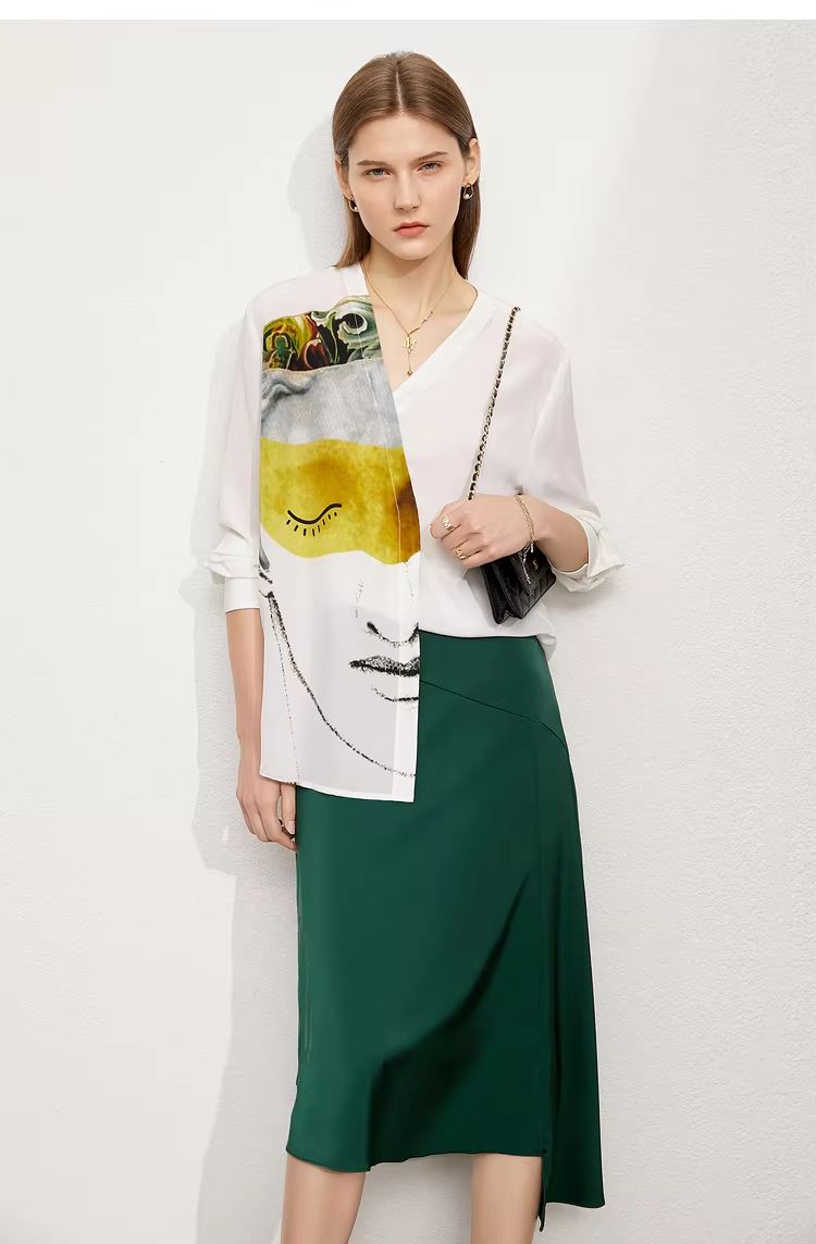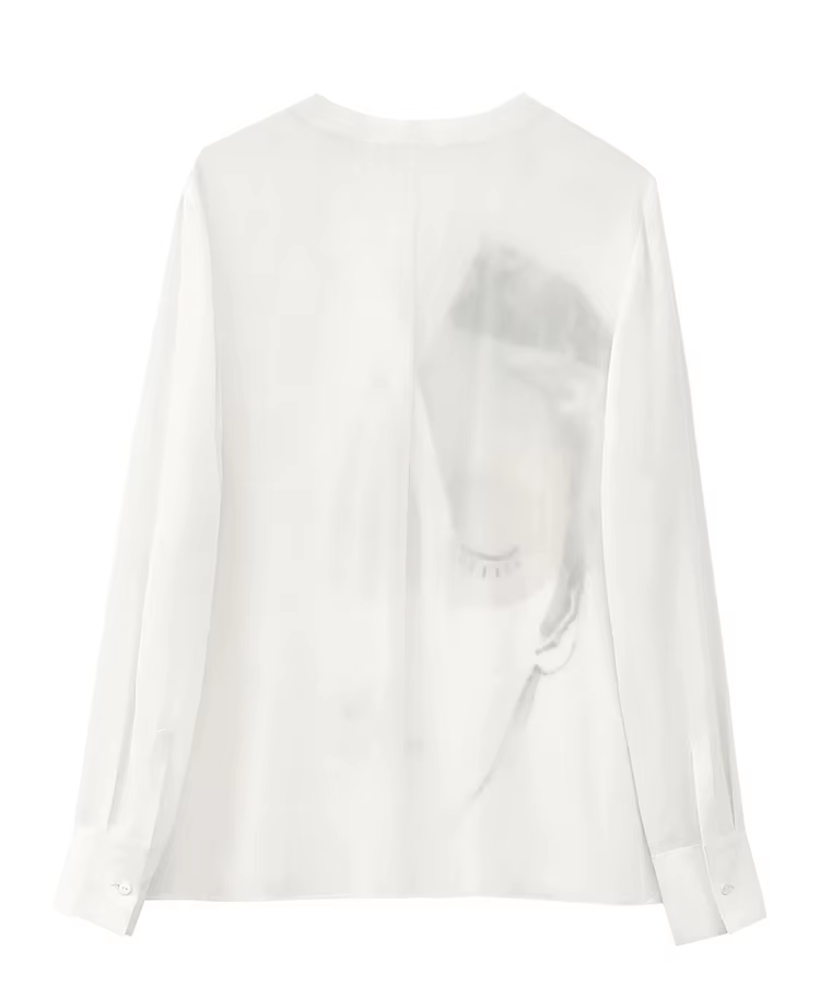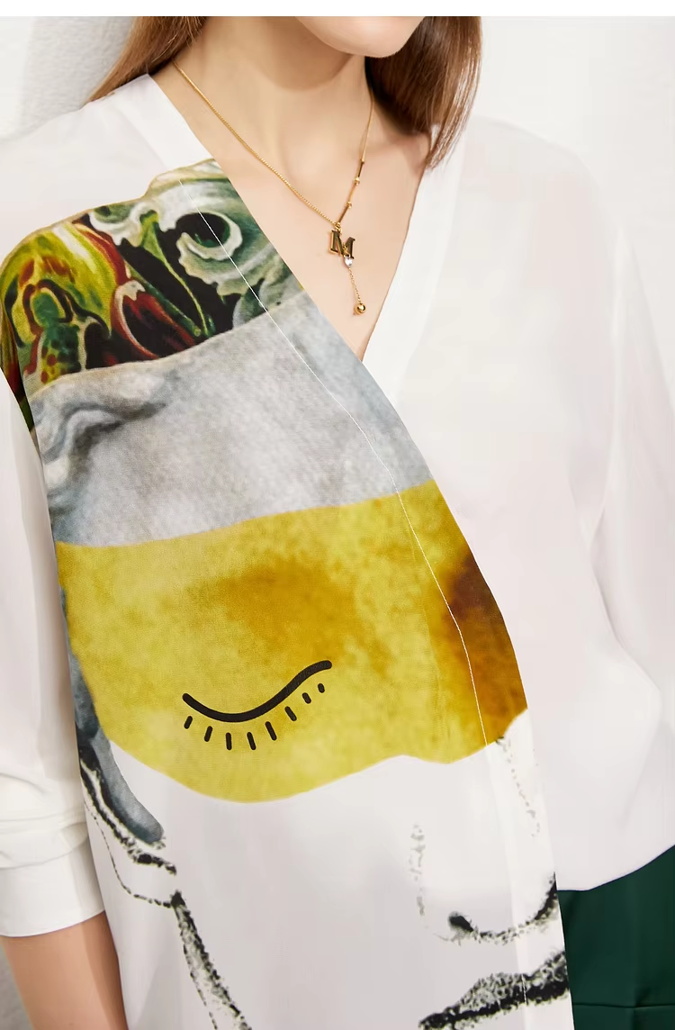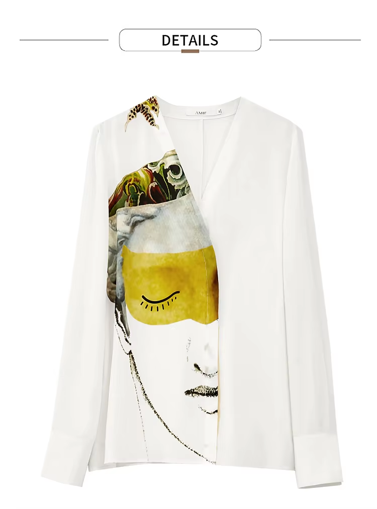 Amii Minimalism 2024 Women's Shirts Autumn New Artistic Printed V-neck Silk Female Long Sleeve Trendy Shirts & Blouses 12443092