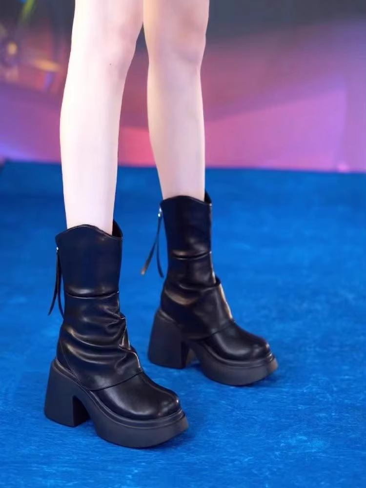 Autumn and winter new waterproof platform thick heeled fashion boots with thick sole height increasing short tube slimming boots